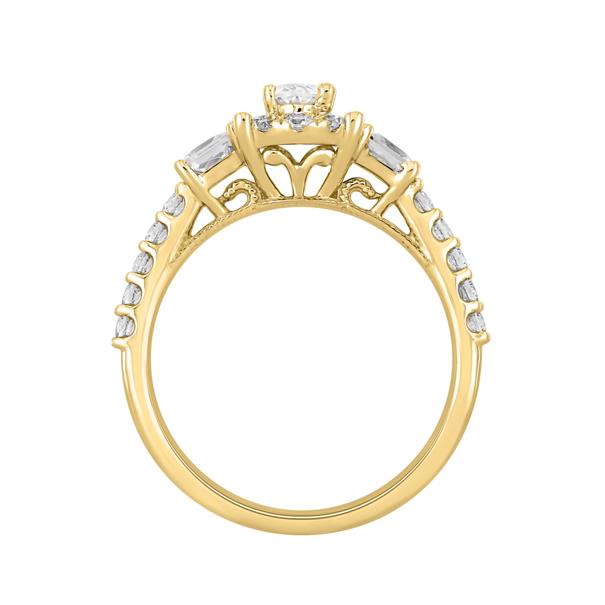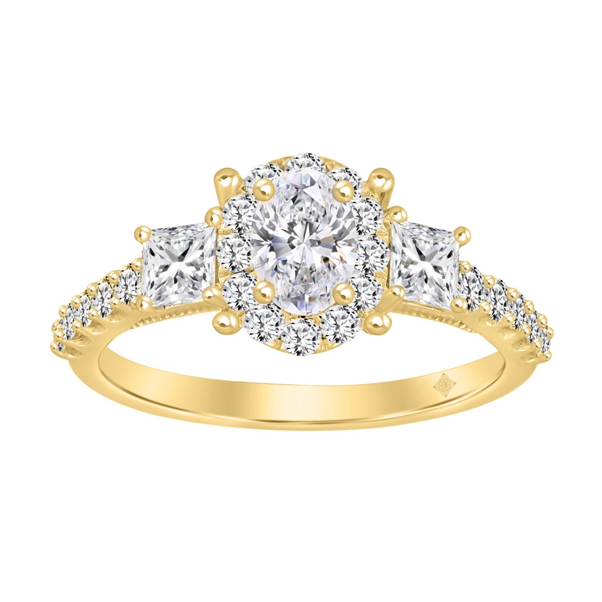 LADIES RING 1 1/4CT OVAL/PRINCESS/ROUND DIAMOND 14K YELLOW GOLD (CENTER STONE OVAL DIAMOND 3/8CT)