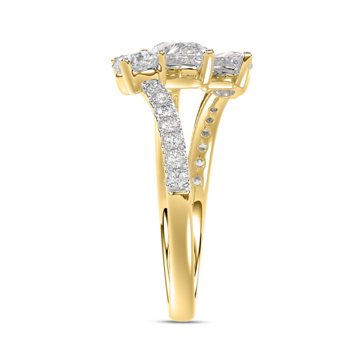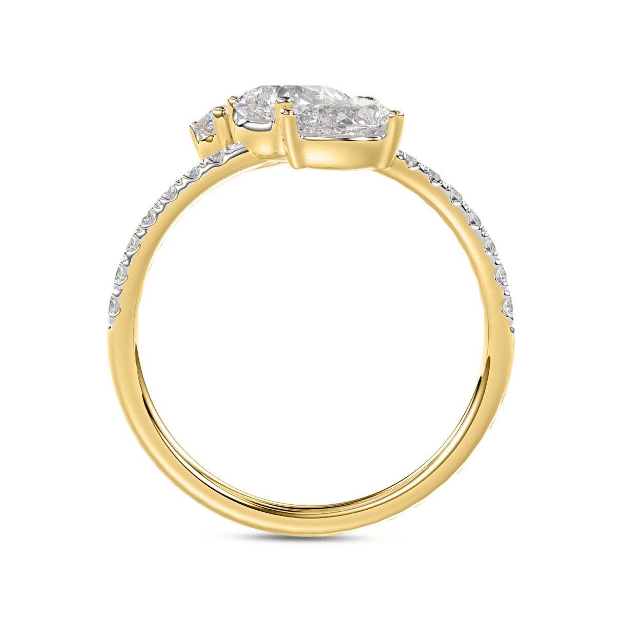 LADIES RING 1 1/4CT ROUND/PEAR DIAMOND 18K YELLOW GOLD