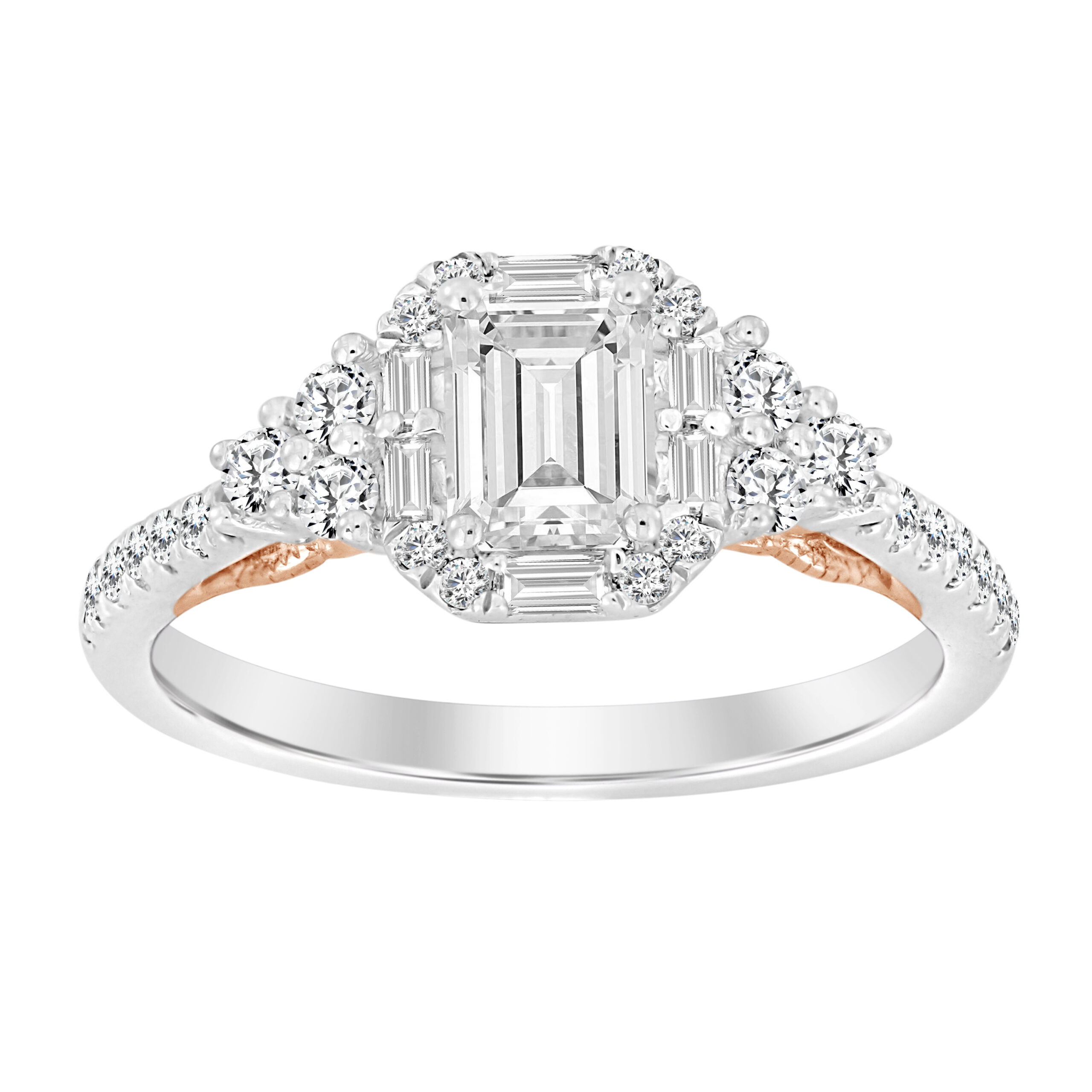 LADIES RING 1.25CT ROUND/BAGUETTE/EMERALD DIAMOND 14K WHITE/YELLOW GOLD (CENTER STONE 0.75 CT EMERALD DIAMOND)