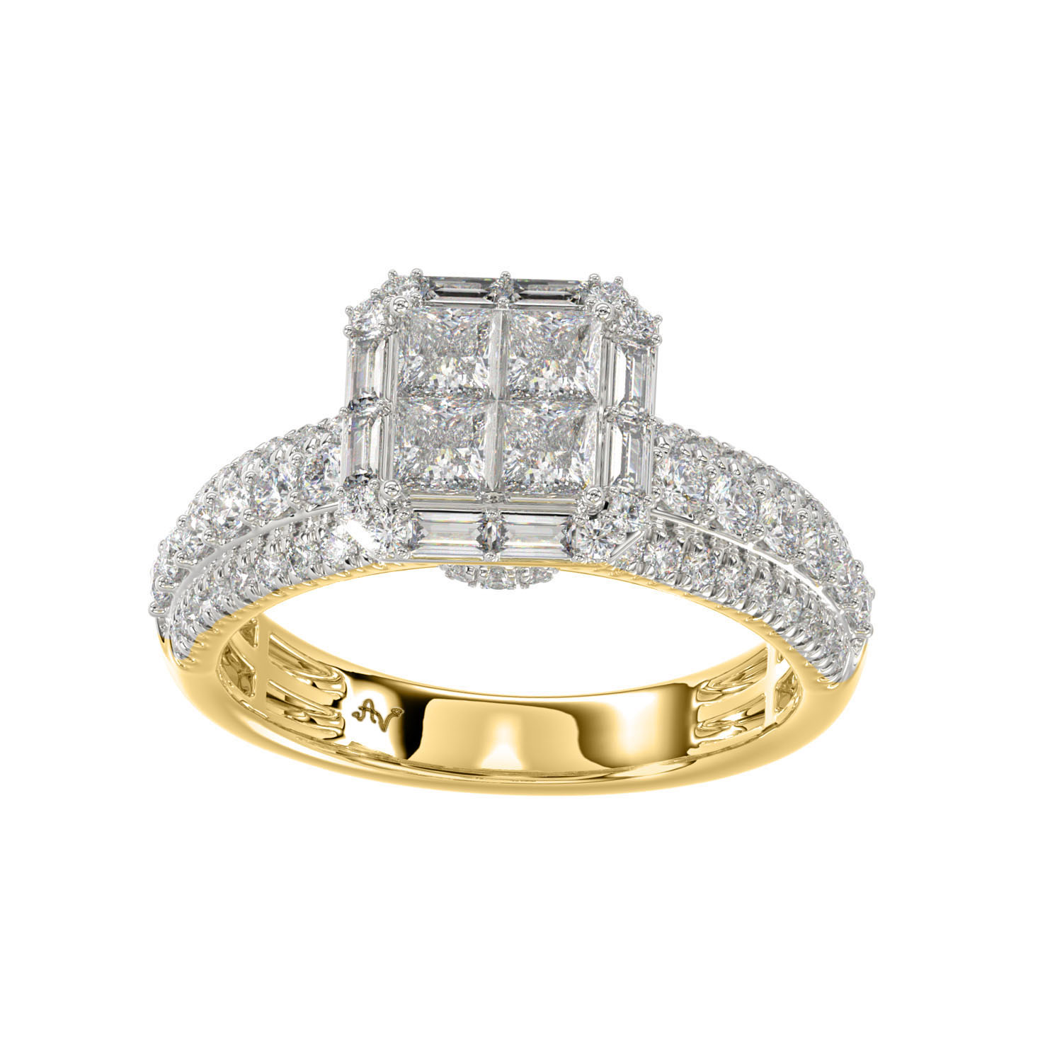 Home Rings LADIES RING 1.25CT ROUND/BAGUETTE/PRINCESS 14K YELLOW GOLD