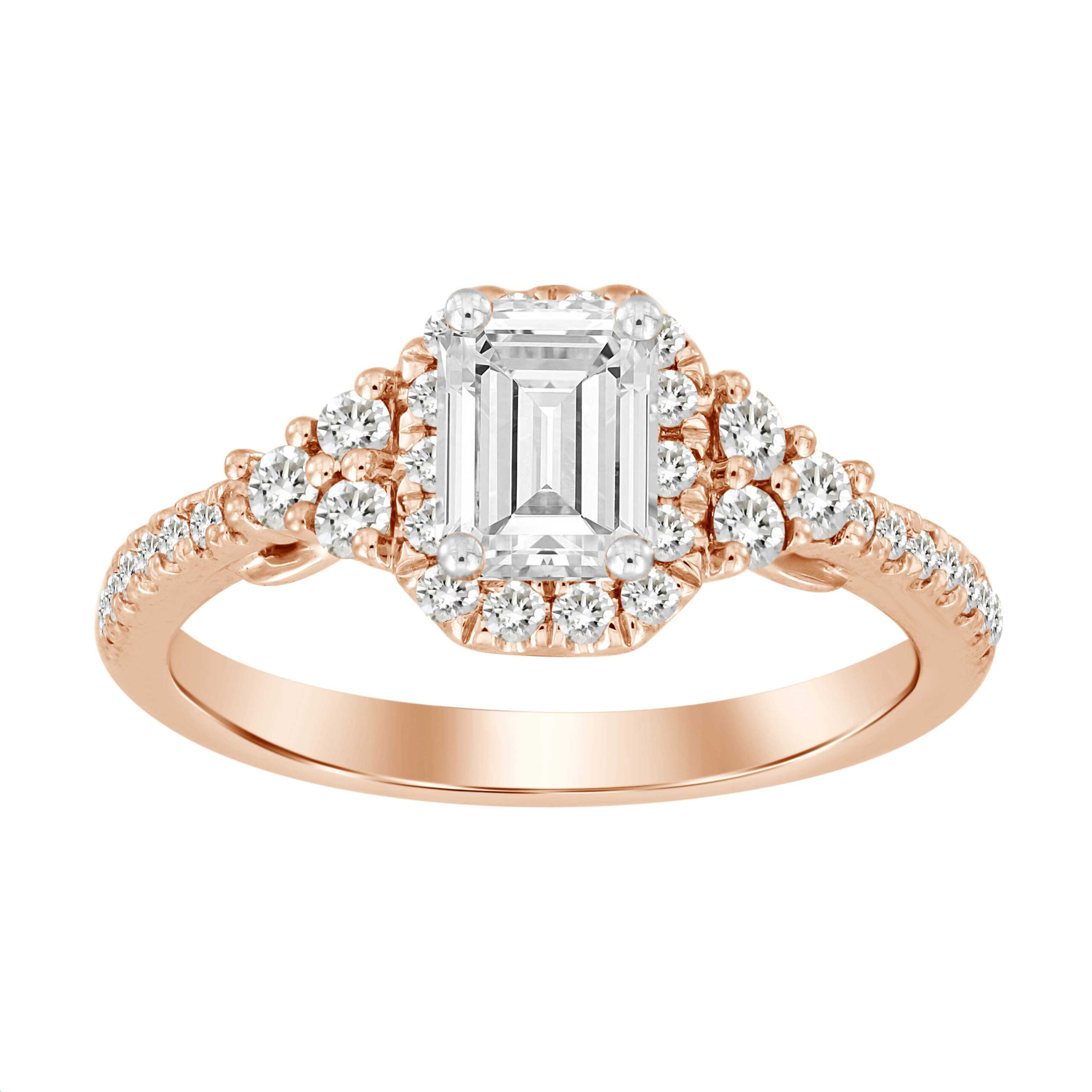 LADIES RING 1.25CT ROUND/EMERALD DIAMOND 14K ROSE GOLD (CENTER STONE 0.75CT EMERALD DIAMOND)