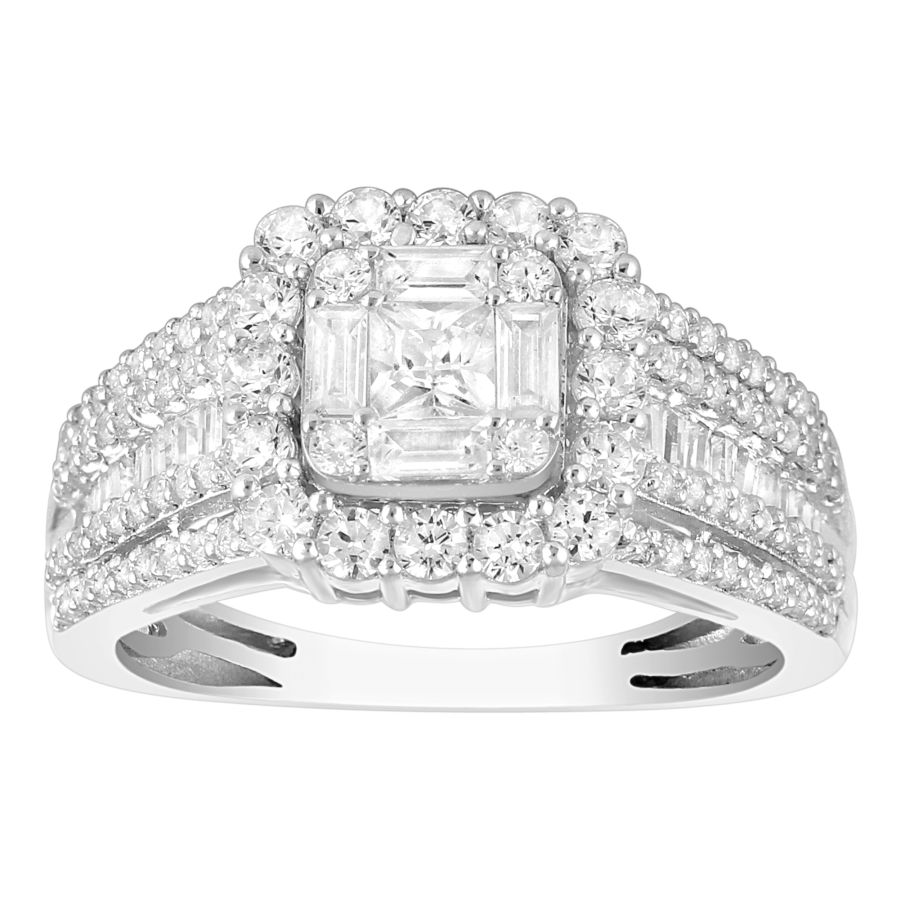 Home Rings LADIES RING 1.25CT ROUND/PRINCESS/BAGUETTE DIAMOND 14K WHITE GOLD