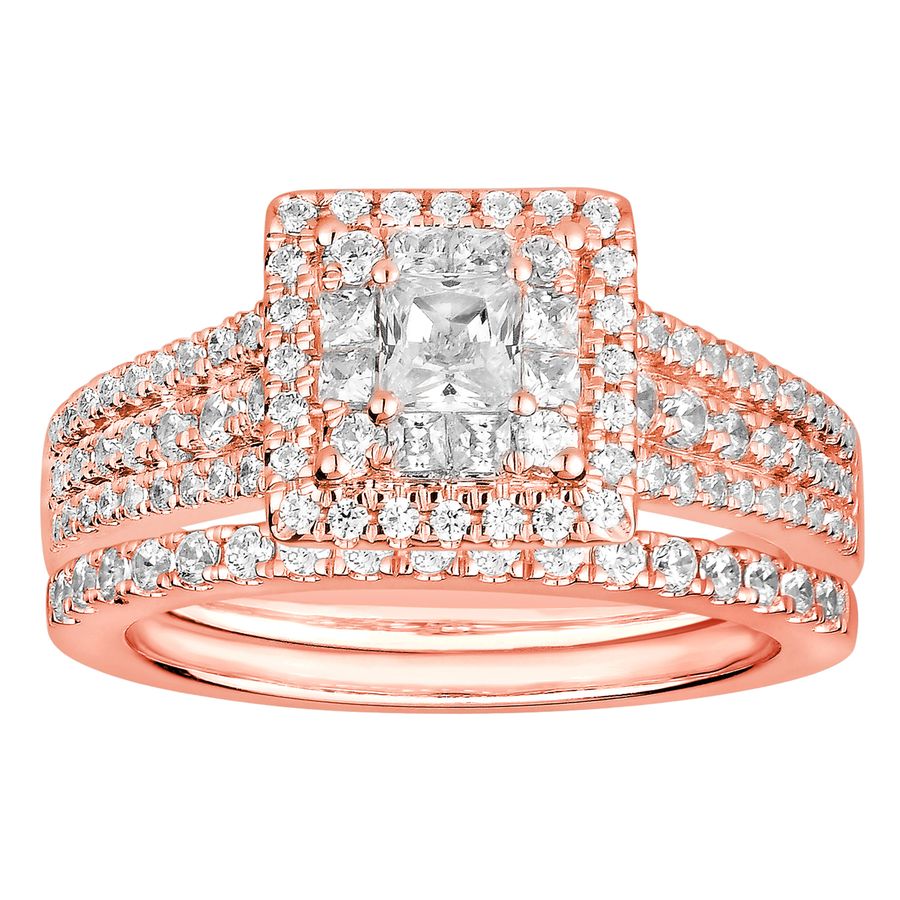 LADIES RING 1.25CT ROUND/PRINCESS DIAMOND 14K ROSE GOLD