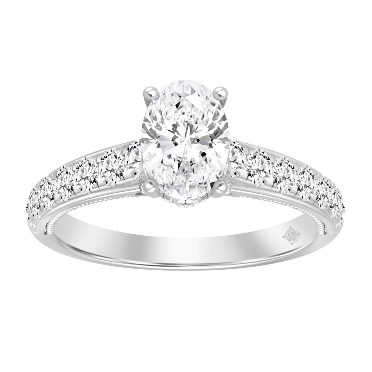 LADIES RING 1 3/4CT ROUND/OVAL DIAMOND 14K WHITE GOLD (CENTER STONE OVAL DIAMOND 1CT )
