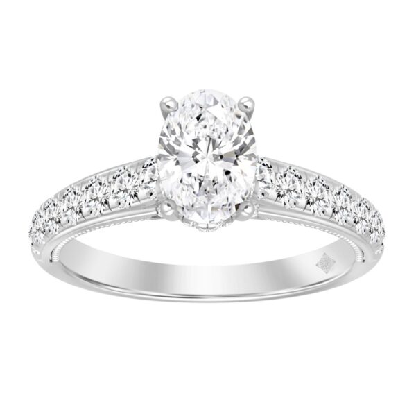 LADIES RING 1 3/4CT ROUND/OVAL DIAMOND 14K WHITE GOLD (CENTER STONE OVAL DIAMOND 1CT )