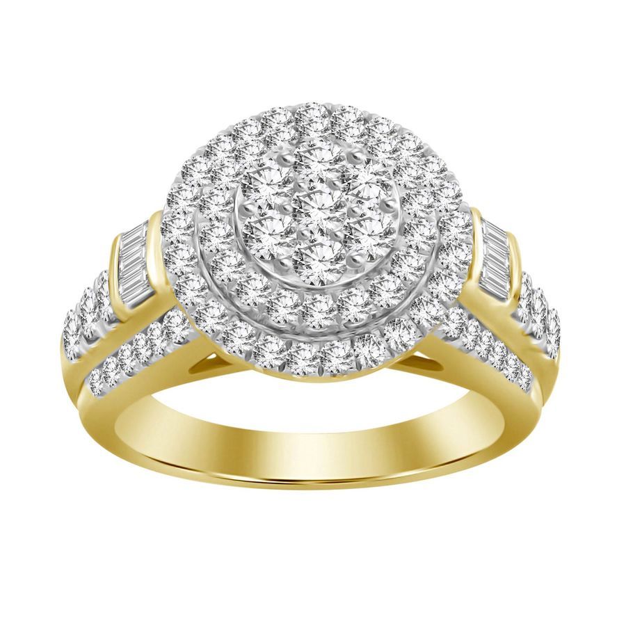 LADIES RING 1.50CT ROUND/BAGUETTE DIAMOND 10K YELLOW GOLD