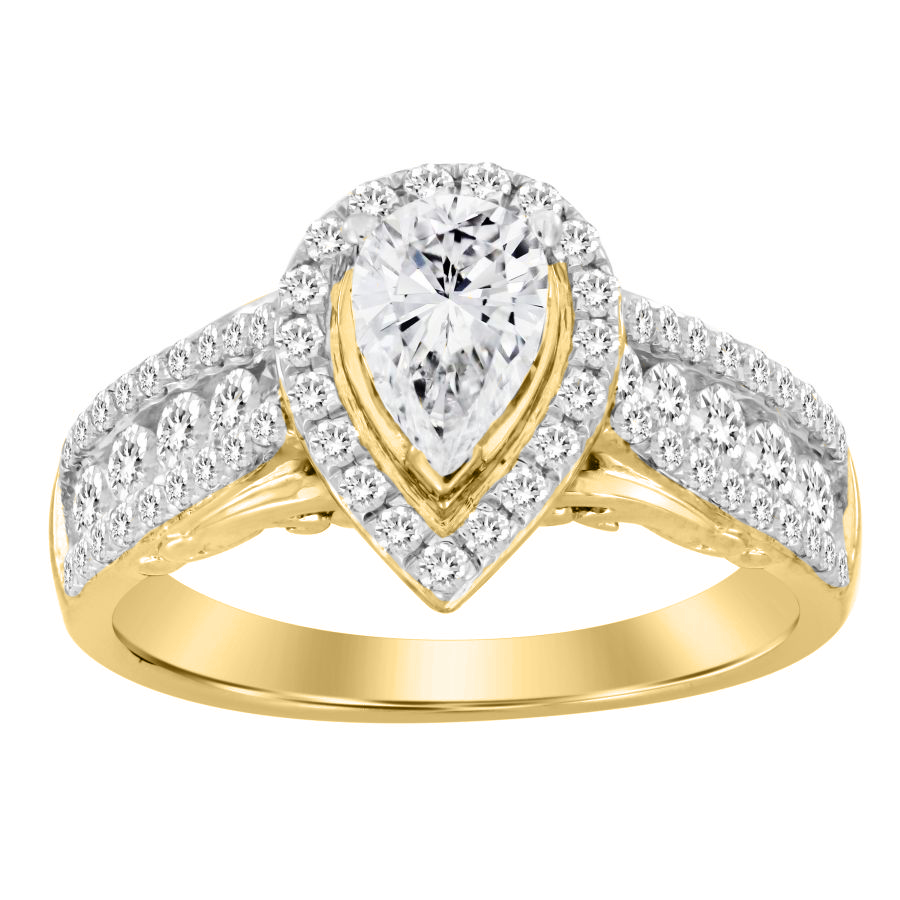 Home Rings LADIES RING 1.50CT ROUND/PEAR DIAMOND 14K YELLOW GOLD (CENTER STONE 0.75CT PEAR DIAMOND)