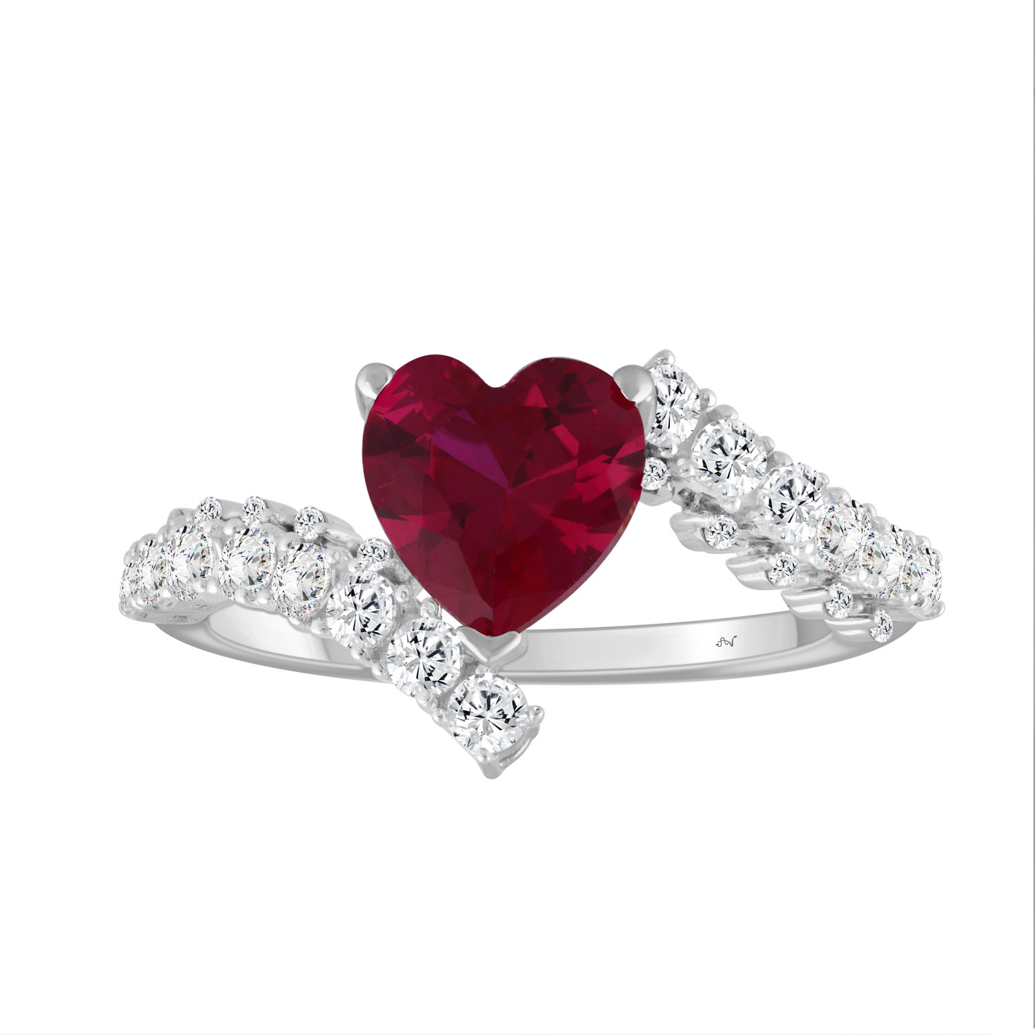 LADIES RING 1.70CT ROUND DIAMOND 14K WHITE GOLD (HEART RUBY DIAMOND 1.20CT)