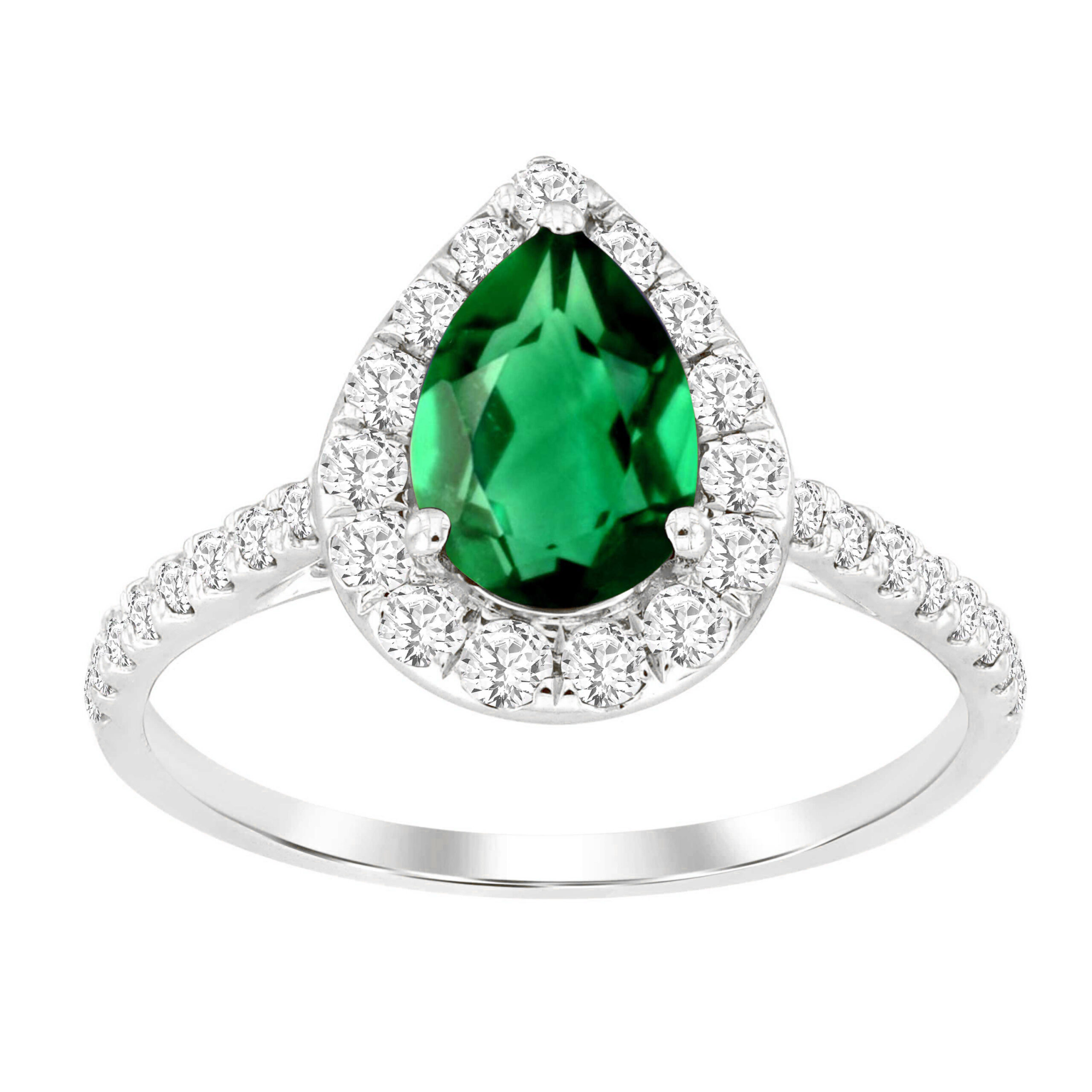 Home Rings LADIES RING 1.75CT ROUND/EMERALD/PEAR DIAMOND 14K WHITE GOLD (CENTER STONE PEAR EMERALD APPROX-1.20CT)