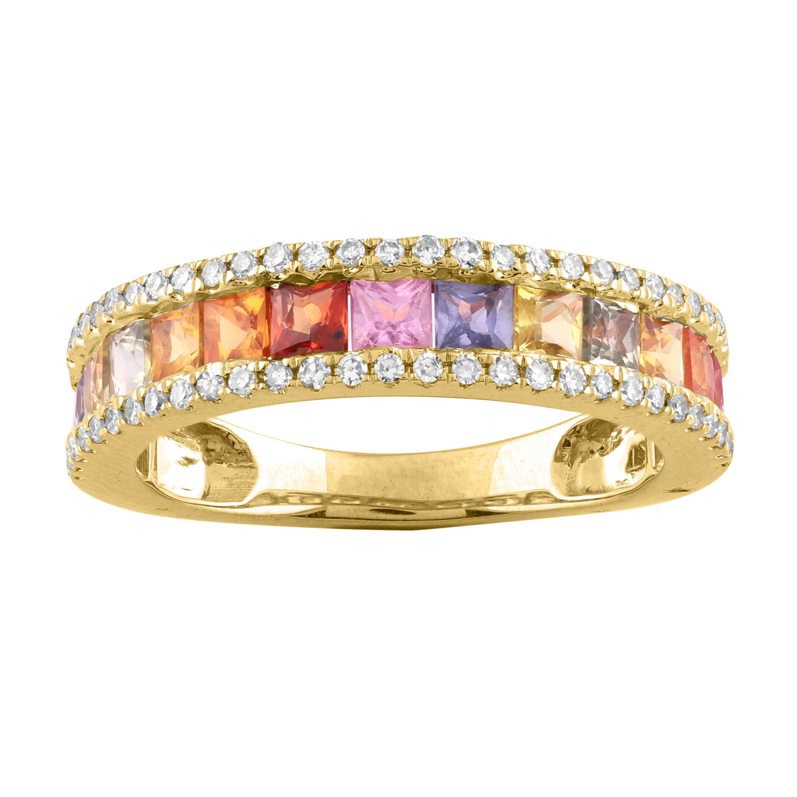 LADIES RING 1.80CT ROUND/PRINCESS DIAMOND 14K YELLOW GOLD (COLOUR STONE MIX-1.55CT)