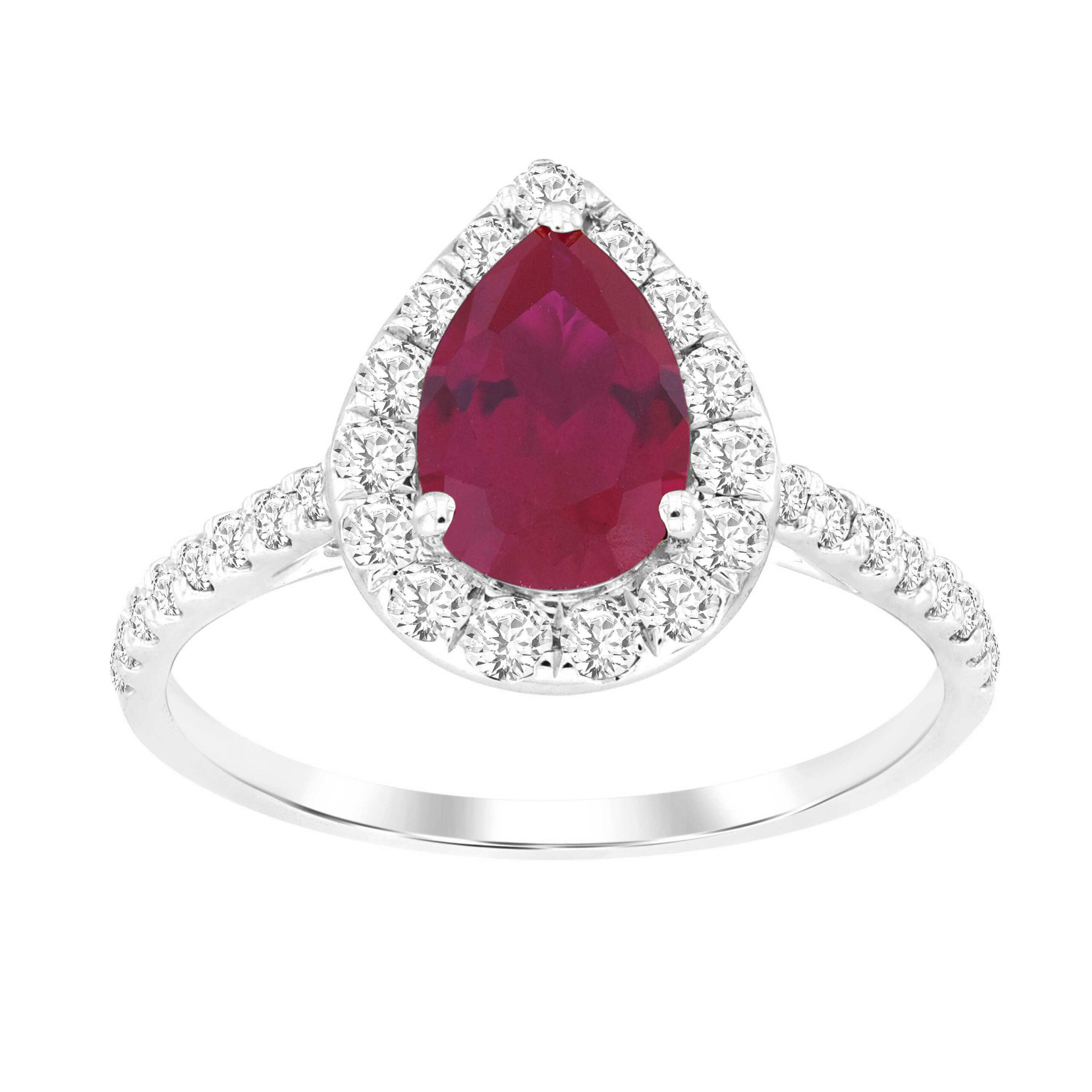 LADIES RING 1.90CT ROUND/PEAR/RUBY DIAMOND 14K WHITE GOLD (CENTER STONE PEAR RUBY APPROX- 1.35CT)