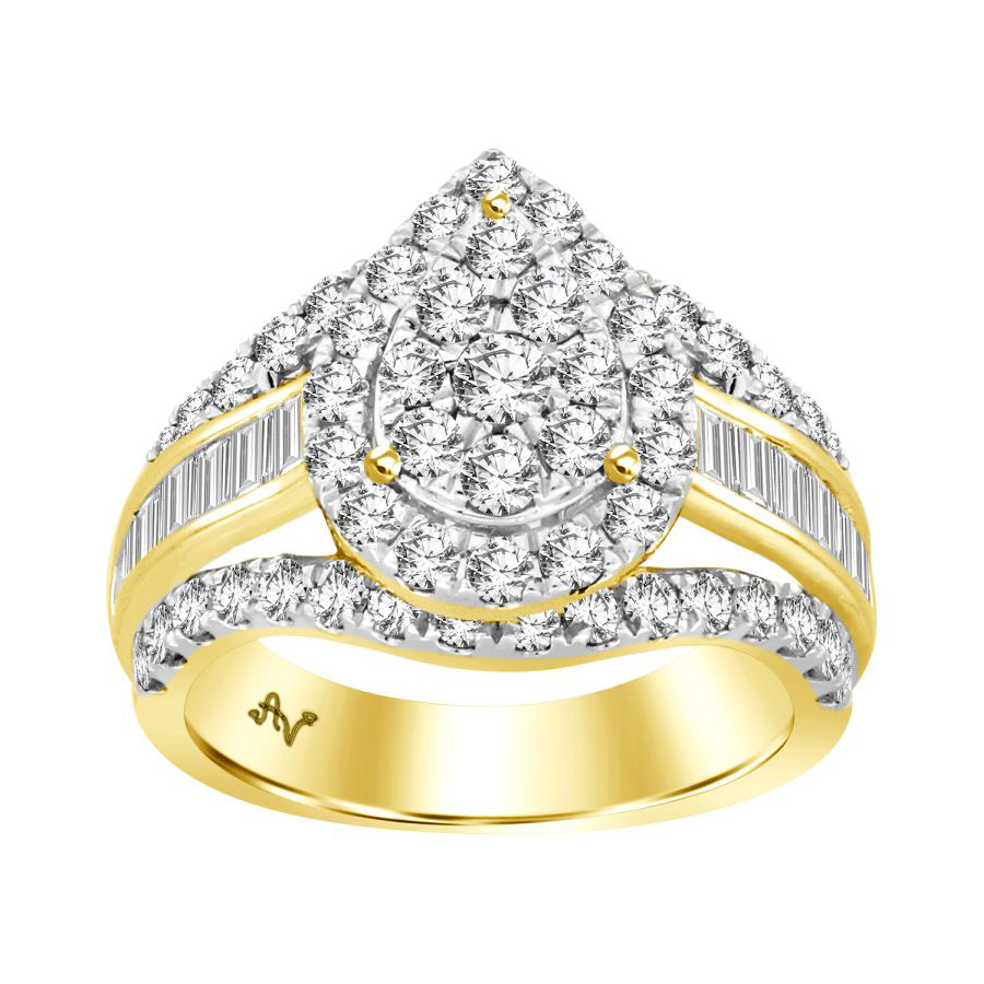 LADIES RING 2.00CT ROUND/BAGUETTE DIAMOND 10K YELLOW GOLD