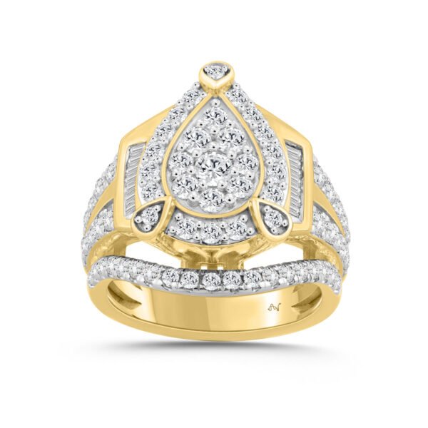 LADIES RING 2.00CT ROUND/BAGUETTE DIAMOND 10K YELLOW GOLD