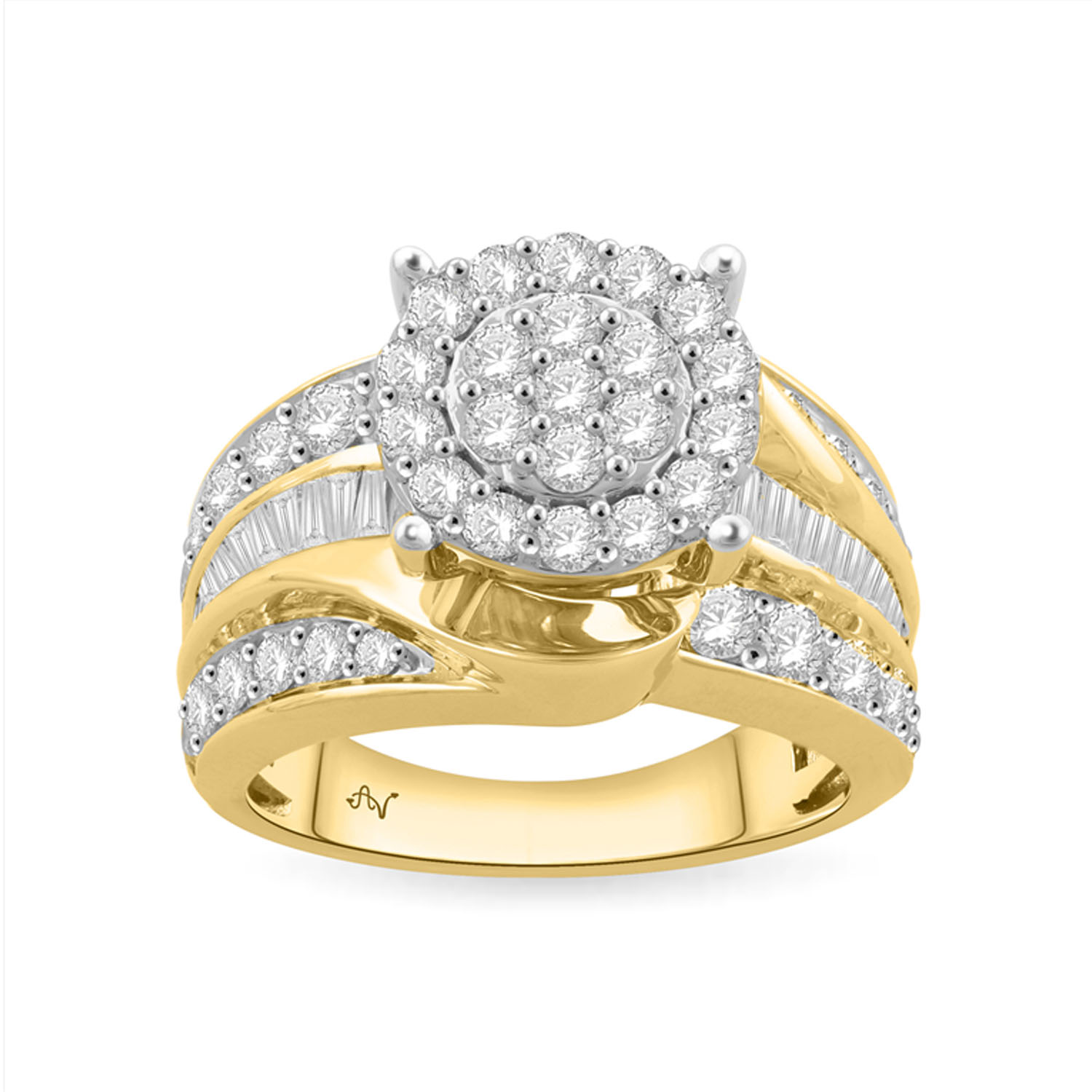 LADIES RING 2.00CT ROUND/BAGUETTE DIAMOND 10K YELLOW GOLD