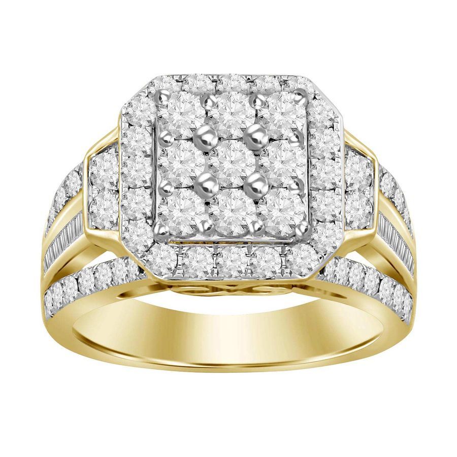 LADIES RING 2.00CT ROUND/BAGUETTE DIAMOND 10K YELLOW GOLD