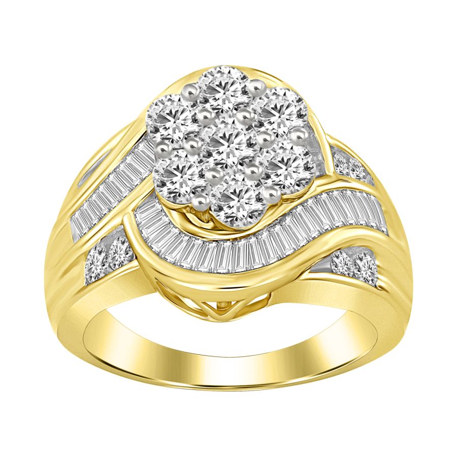LADIES RING 2.00CT ROUND/BAGUETTE DIAMOND 10K YELLOW GOLD