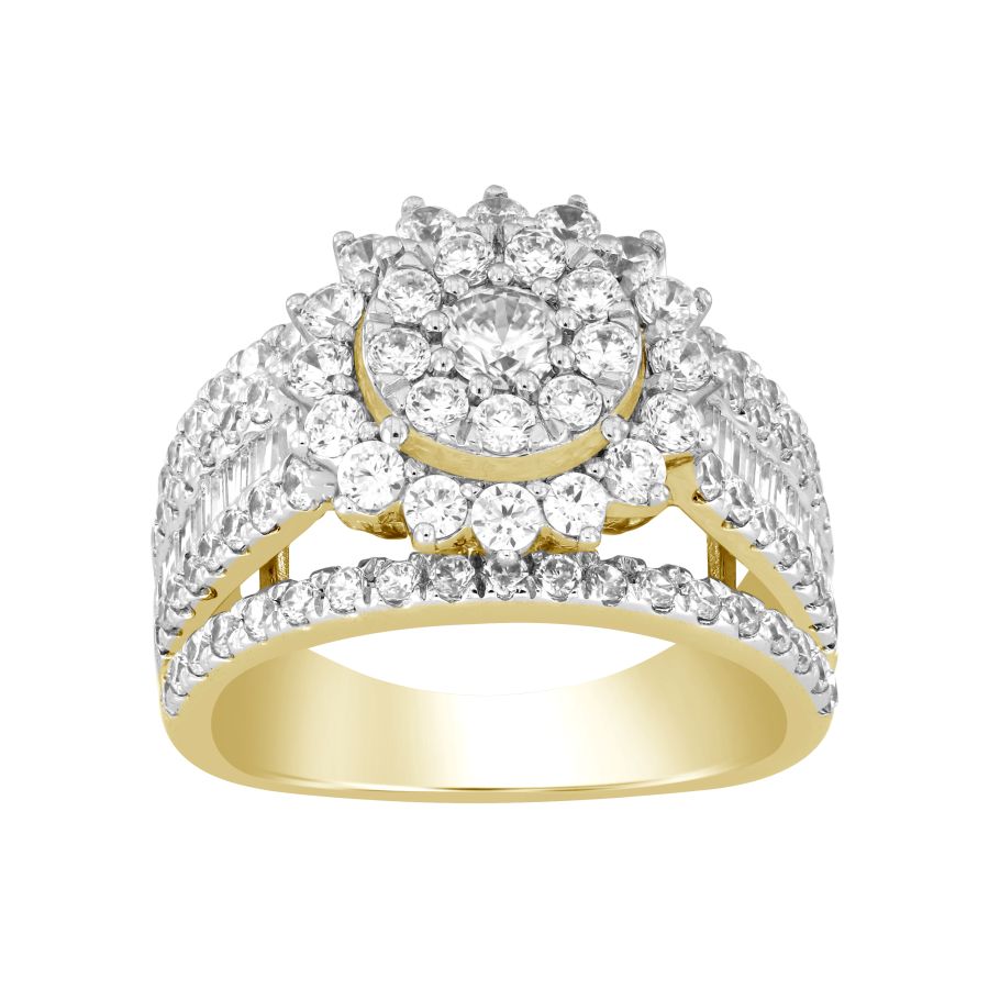 LADIES RING 2.00CT ROUND/BAGUETTE DIAMOND 10K YELLOW GOLD