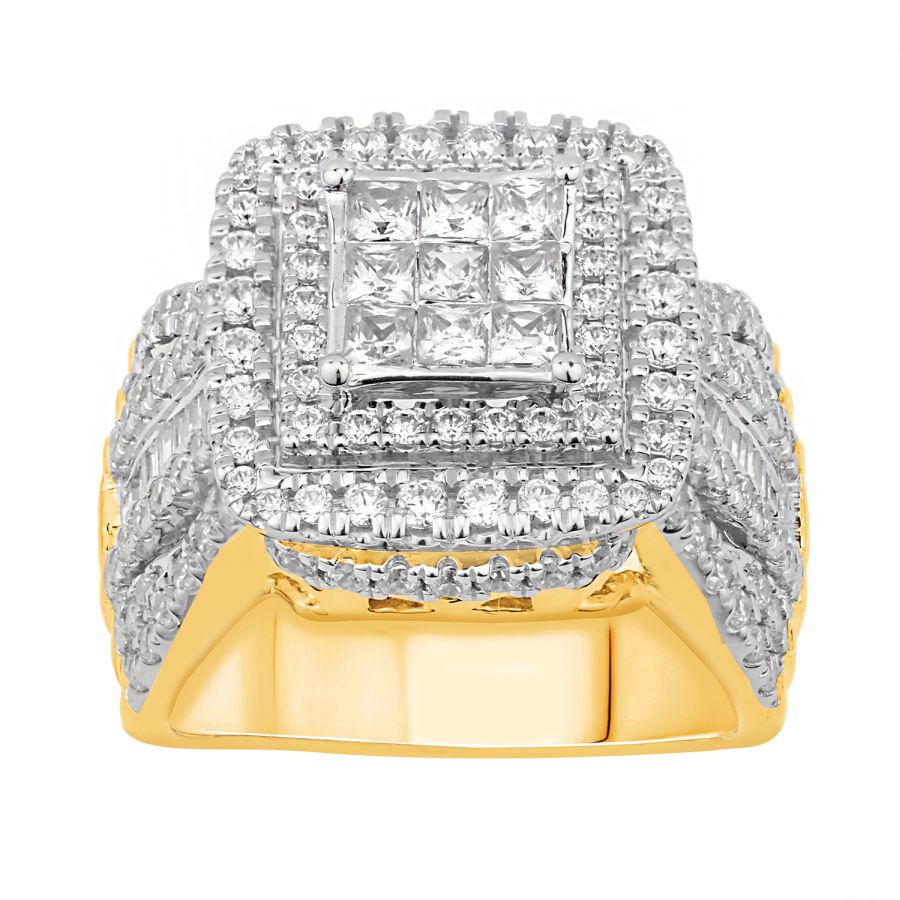 LADIES RING 2.00CT ROUND/PRINCESS/BAGUETTE DIAMOND 10K YELLOW GOLD
