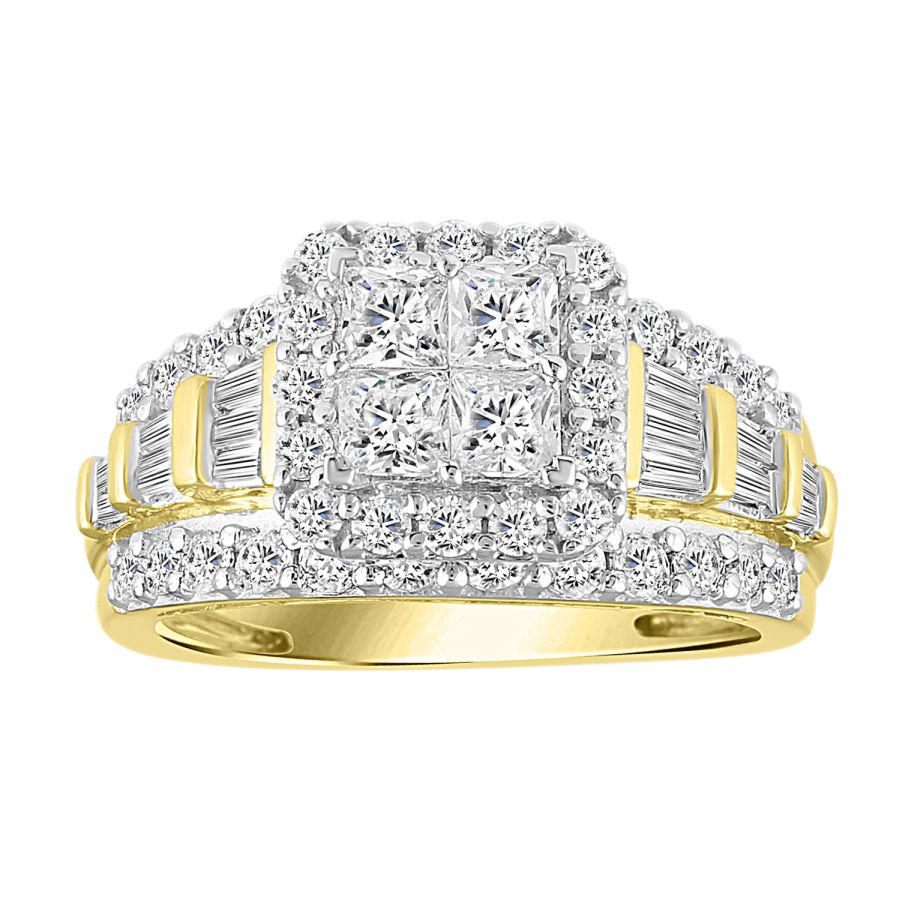 LADIES RING 2.00CT ROUND/PRINCESS/BAGUETTE DIAMOND 10K YELLOW GOLD
