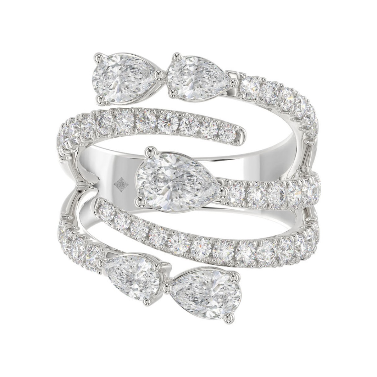Home Rings LADIES RING 2 1/2CT ROUND/PEAR DIAMOND 14K WHITE GOLD