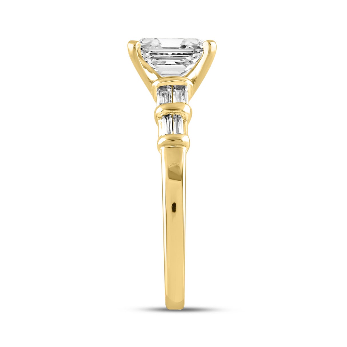 LADIES RING 2 1/4CT BAGUETTE/EMERALD DIAMOND 14K YELLOW GOLD (CENTER STONE EMERALD DIAMOND 2.00CT )
