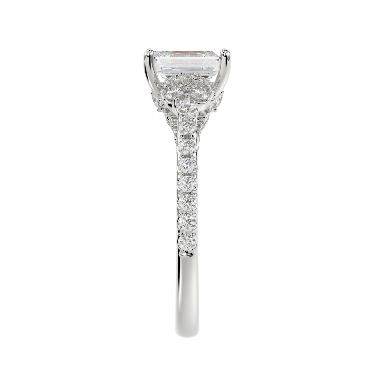 LADIES RING 2 1/4CT ROUND/EMERALD DIAMOND 14K WHITE GOLD (CENTER STONE EMERALD DIAMOND 1 1/2CT )
