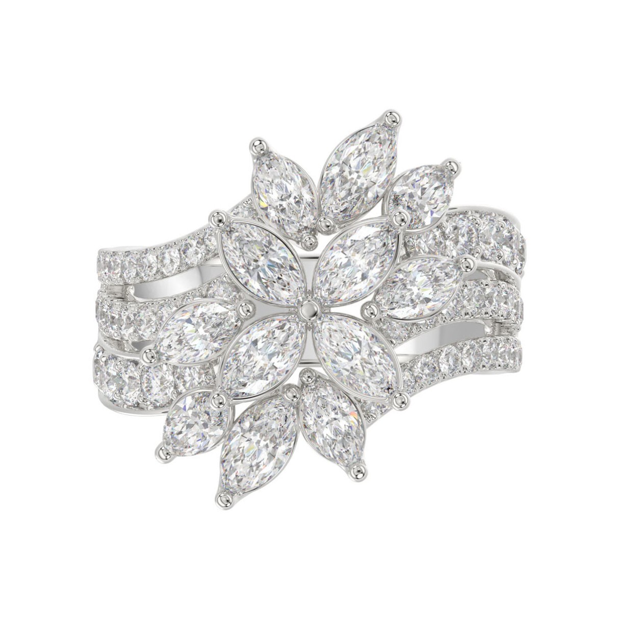 LADIES RING 2 1/4CT ROUND/MARQUISE DIAMOND 14K WHITE GOLD