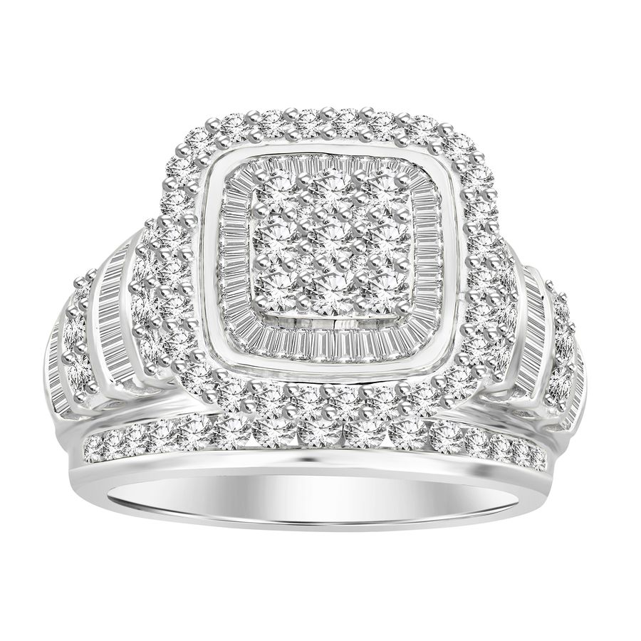 Home Rings LADIES RING 2.10CT ROUND/BAGUETTE DIAMOND 10K WHITE GOLD