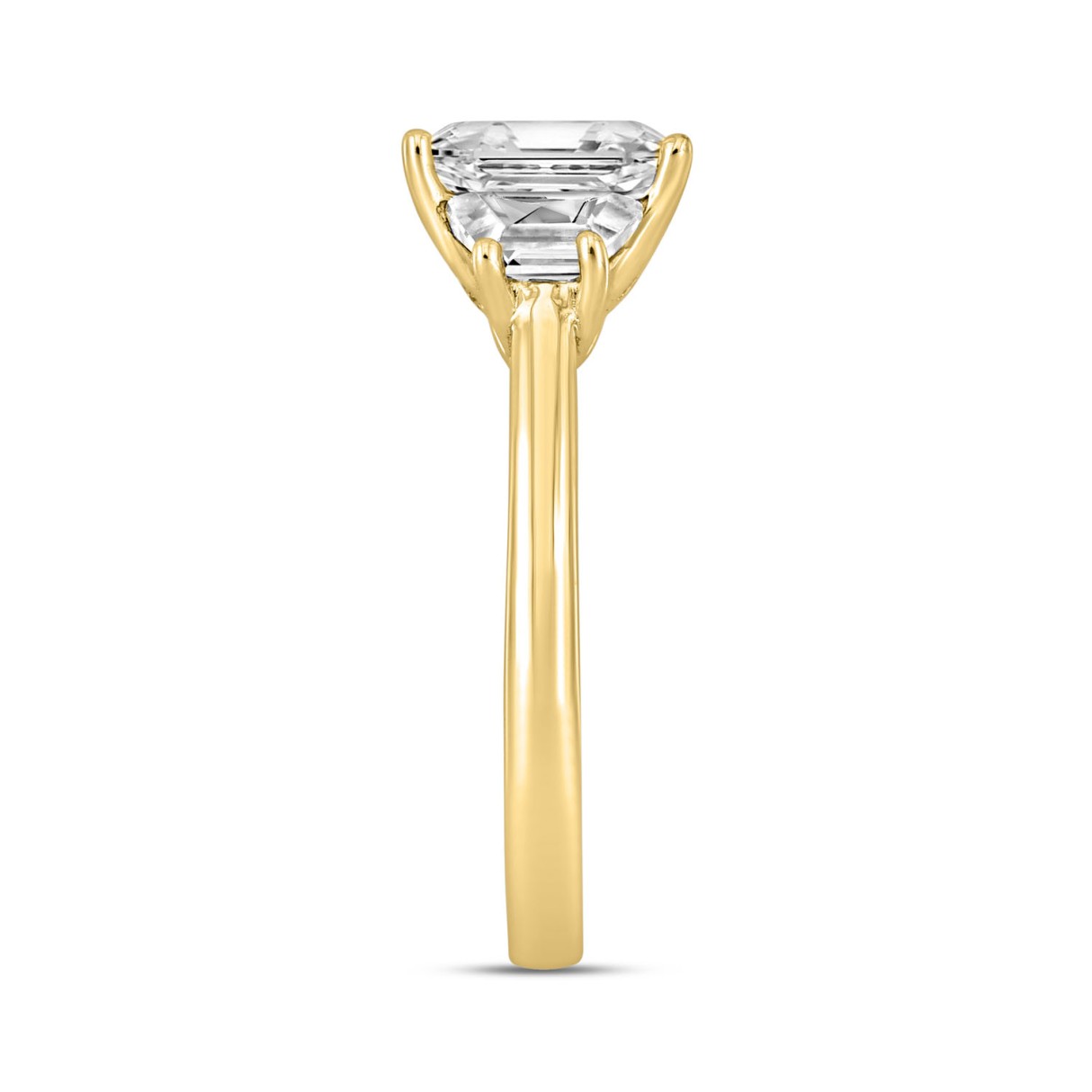 LADIES RING 2 3/4CT ROUND/TRAPEZOID/EMERALD DIAMOND 14K YELLOW GOLD