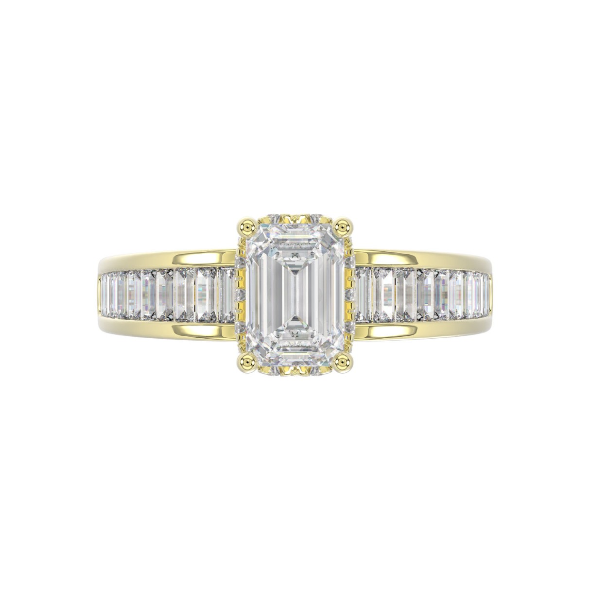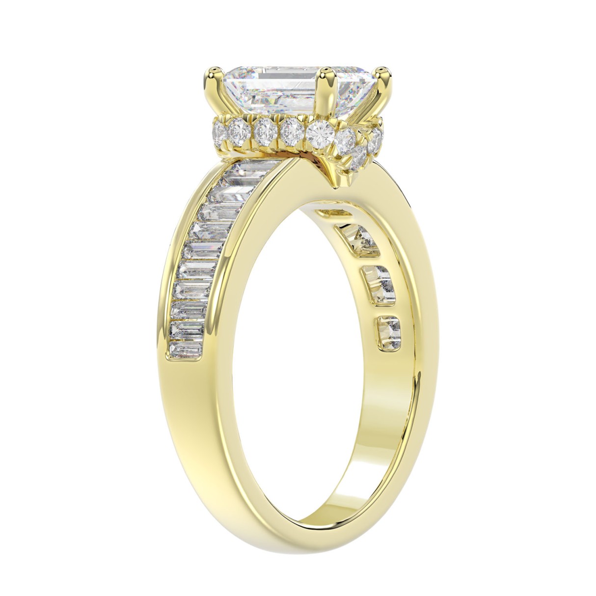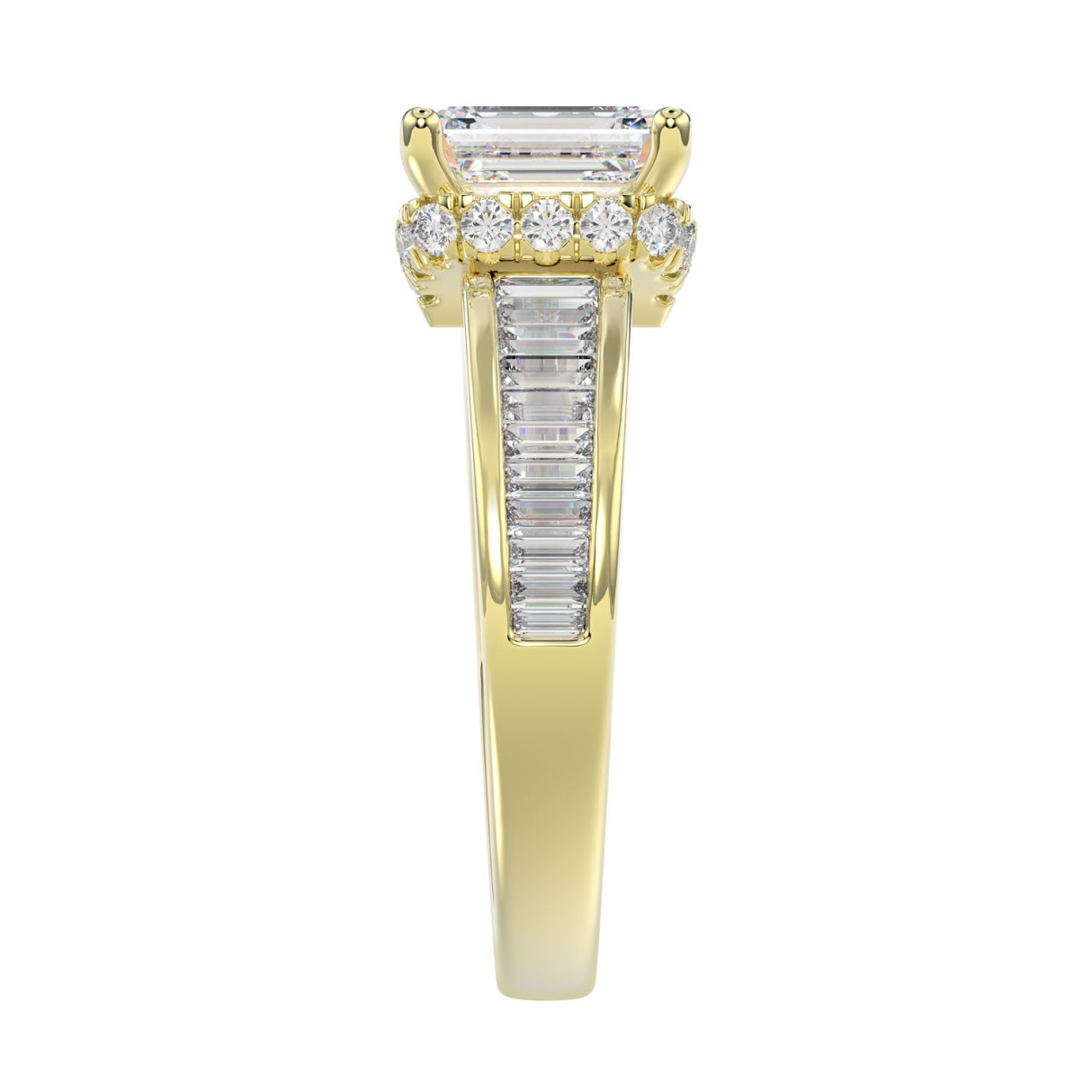 LADIES RING 2 3/4CTROUND/BAGUETTE/EMERALD DIAMOND 14K YELLOW GOLD (CENTER STONE EMERALD DIAMOND 2.00CT )