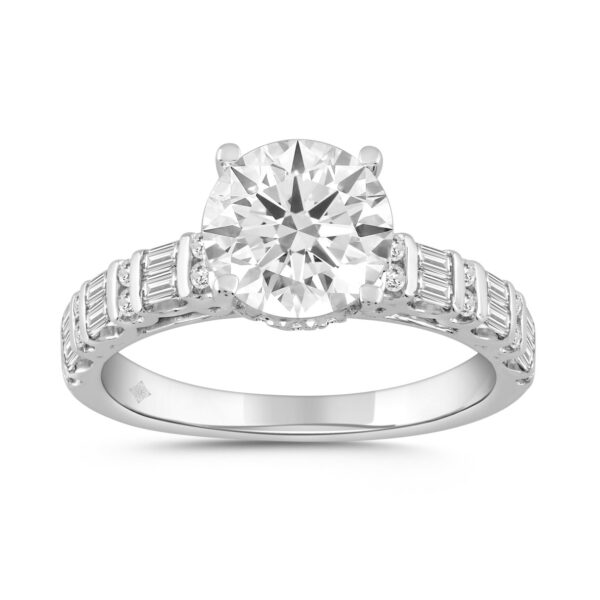 LADIES RING 2.50CT ROUND/BAGUETTE DIAMOND 14K WHITE GOLD (CENTER STONE ROUND DIAMOND 2.00CT)