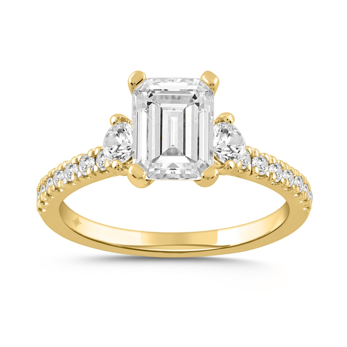 Home Rings LADIES RING 2.50CT ROUND/EMERALD DIAMOND 14K YELLOW GOLD (CENTER STONE EMERALD DIAMOND 2.00CT)