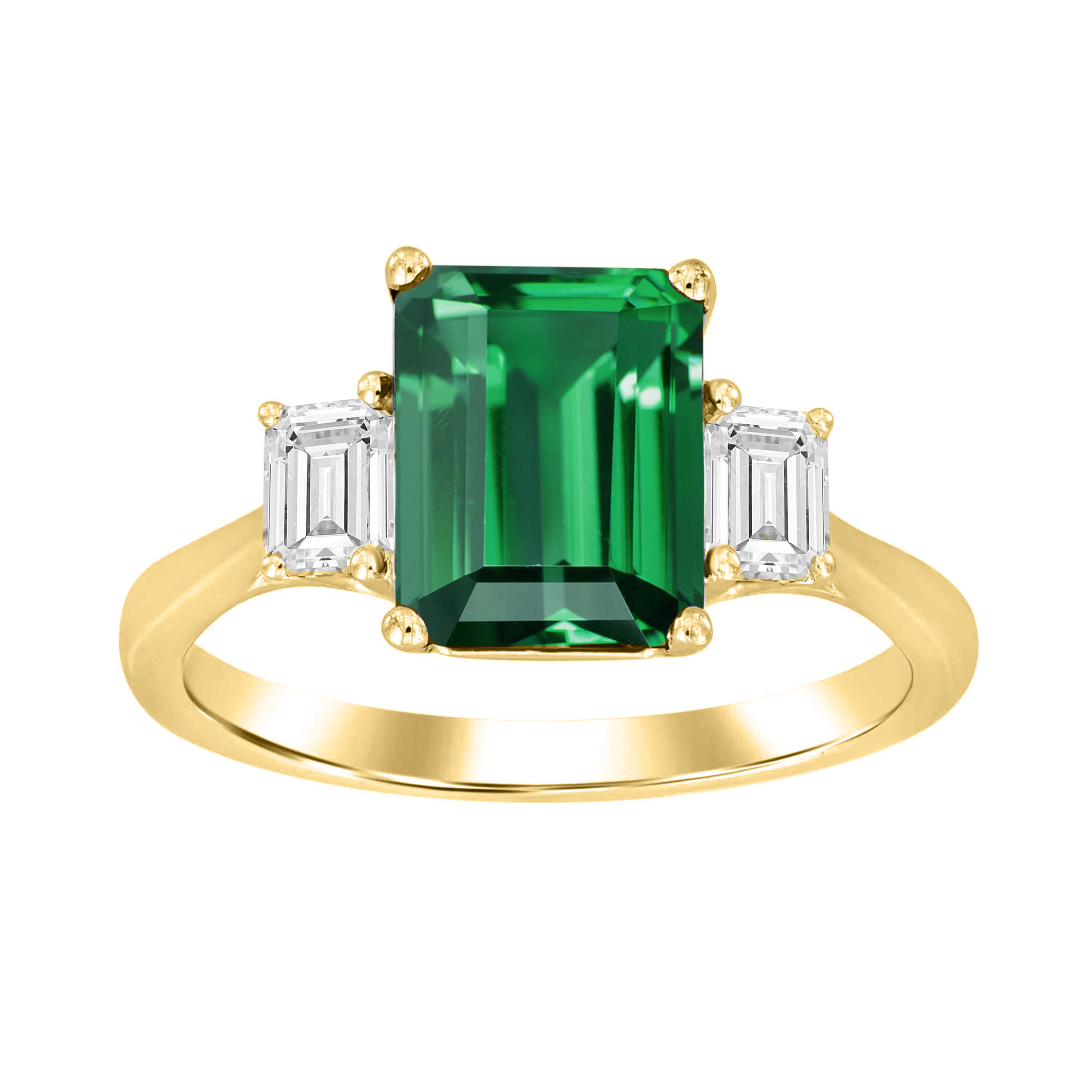 LADIES RING 2.65CT EMERALD DIAMOND 14K YELLOW GOLD (CENTER STONE EMERALD APPROX-2.25CT)
