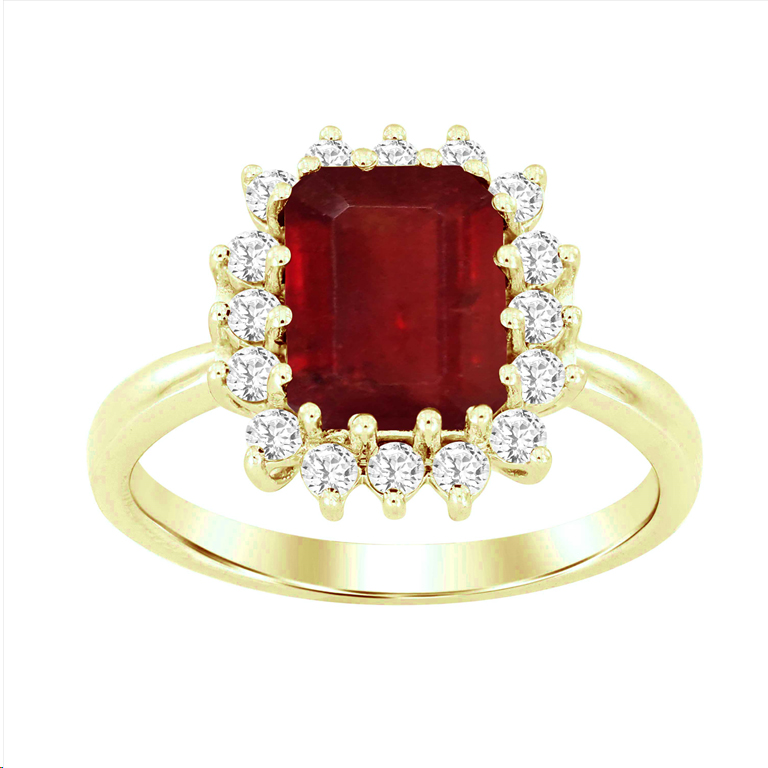 LADIES RING 2.65CT ROUND/RUBY/EMERALD DIAMOND 14K YELLOW GOLD (CENTER STONE EMERALD/RUBY APPROX- 2.25CT)