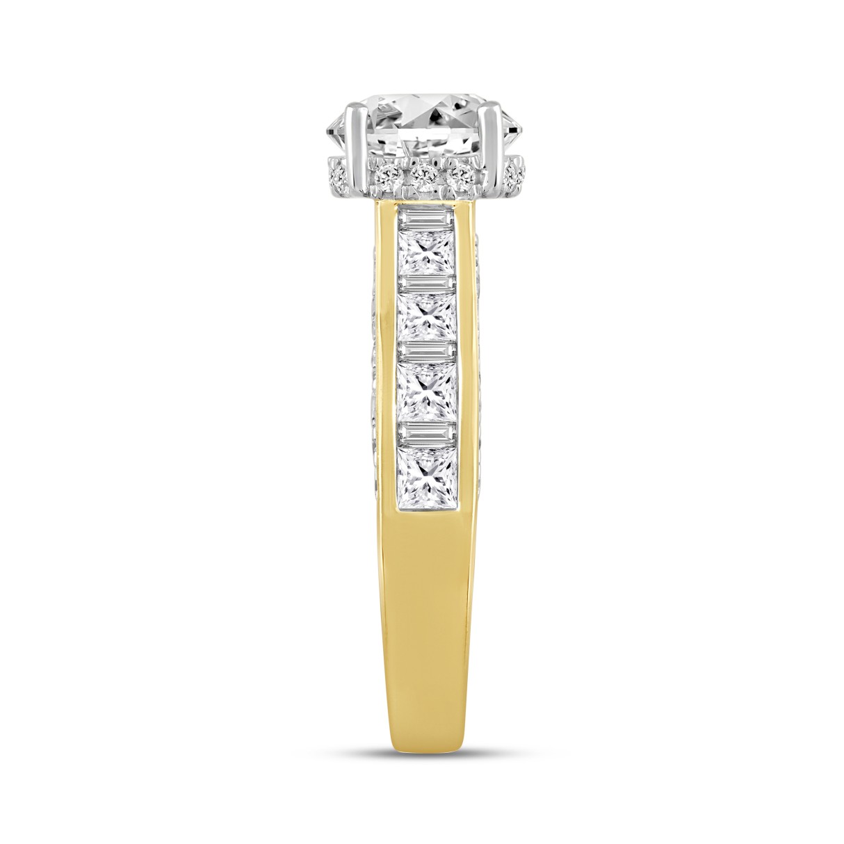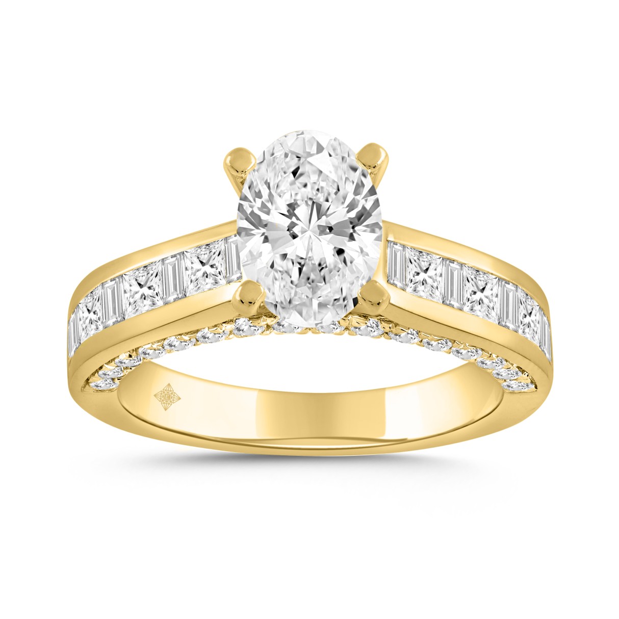LADIES RING 2 7/8CT ROUND/BAGUETTE/PRINCESS/OVAL DIAMOND 14K YELLOW GOLD (CENTER STONE OVAL DIAMOND 1 1/2CT)