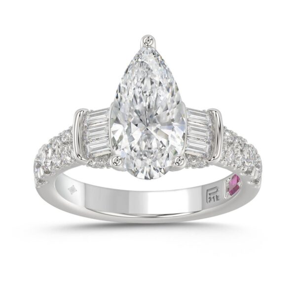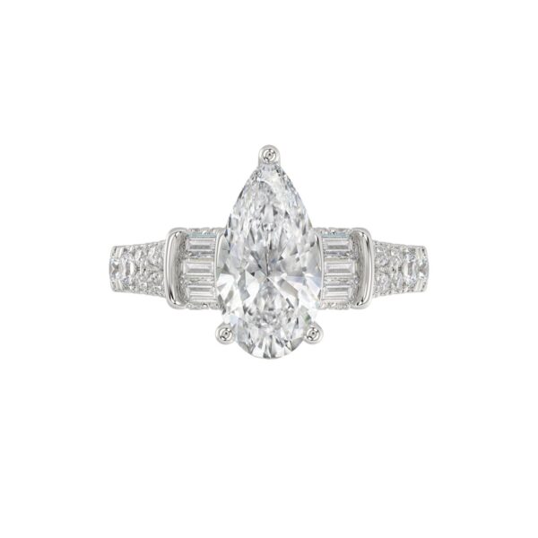 LADIES RING 2.75CT ROUND DIAMOND PEAR DIAMOND BAGUETTE DIAMOND WHITE PLATINUM (CENTER STONE PEAR DIAMOND 2CT)