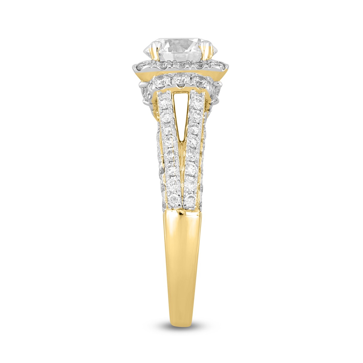 LADIES RING 2CT ROUND DIAMOND 14K YELLOW GOLD (CENTER STONE ROUND DIAMOND 1CT )