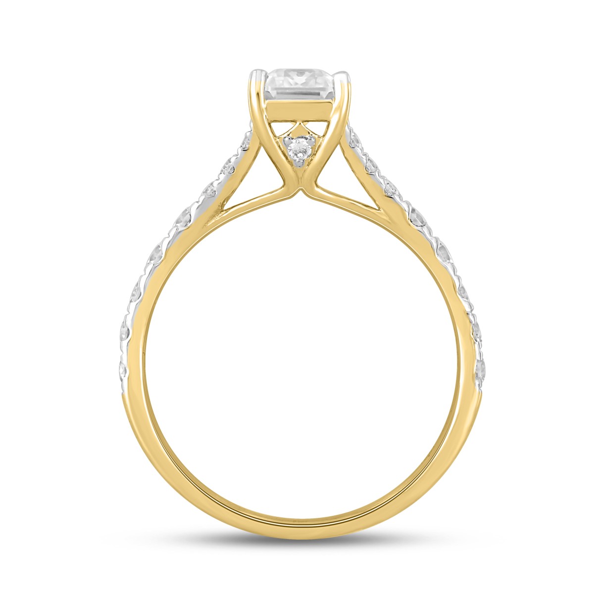 LADIES RING 2CT ROUND/EMERALD DIAMOND 14K YELLOW GOLD (CENTER STONE EMERALD DIAMOND 1 1/2CT )
