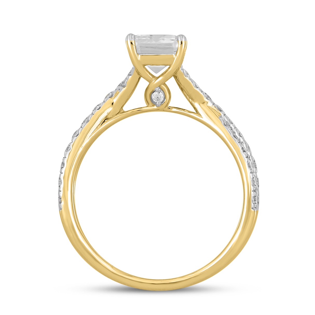 LADIES RING 2CT ROUND/EMERALD DIAMOND 14K YELLOW GOLD (CENTER STONE EMERALD DIAMOND 1 1/2CT )