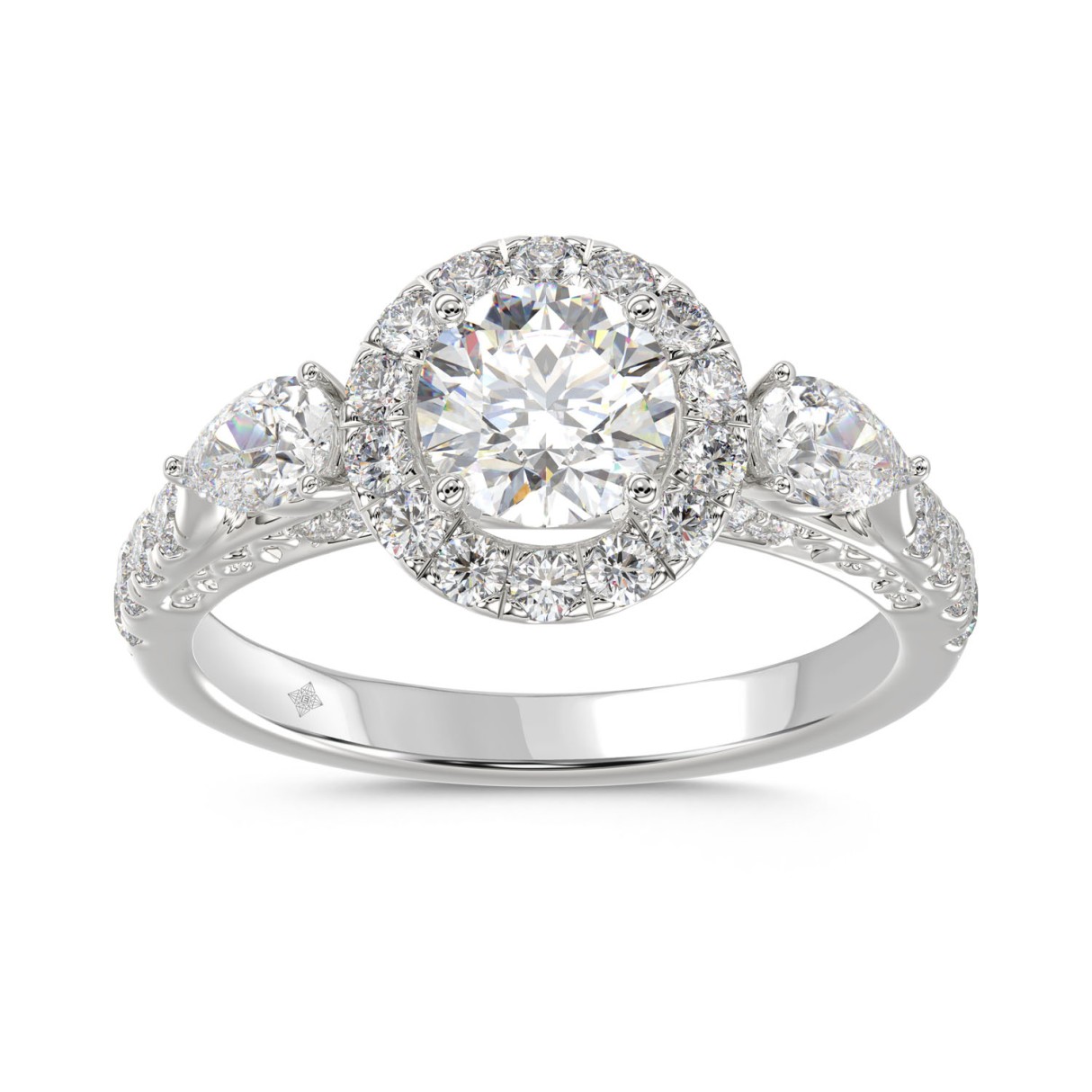 LADIES RING 2CT ROUND/PEAR DIAMOND 14K WHITE GOLD (CENTER STONE ROUND DIAMOND 1CT )