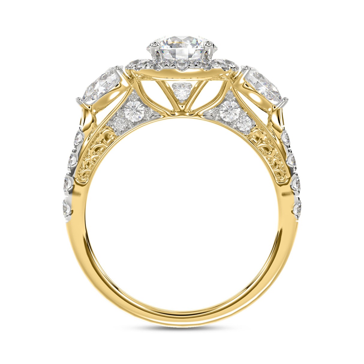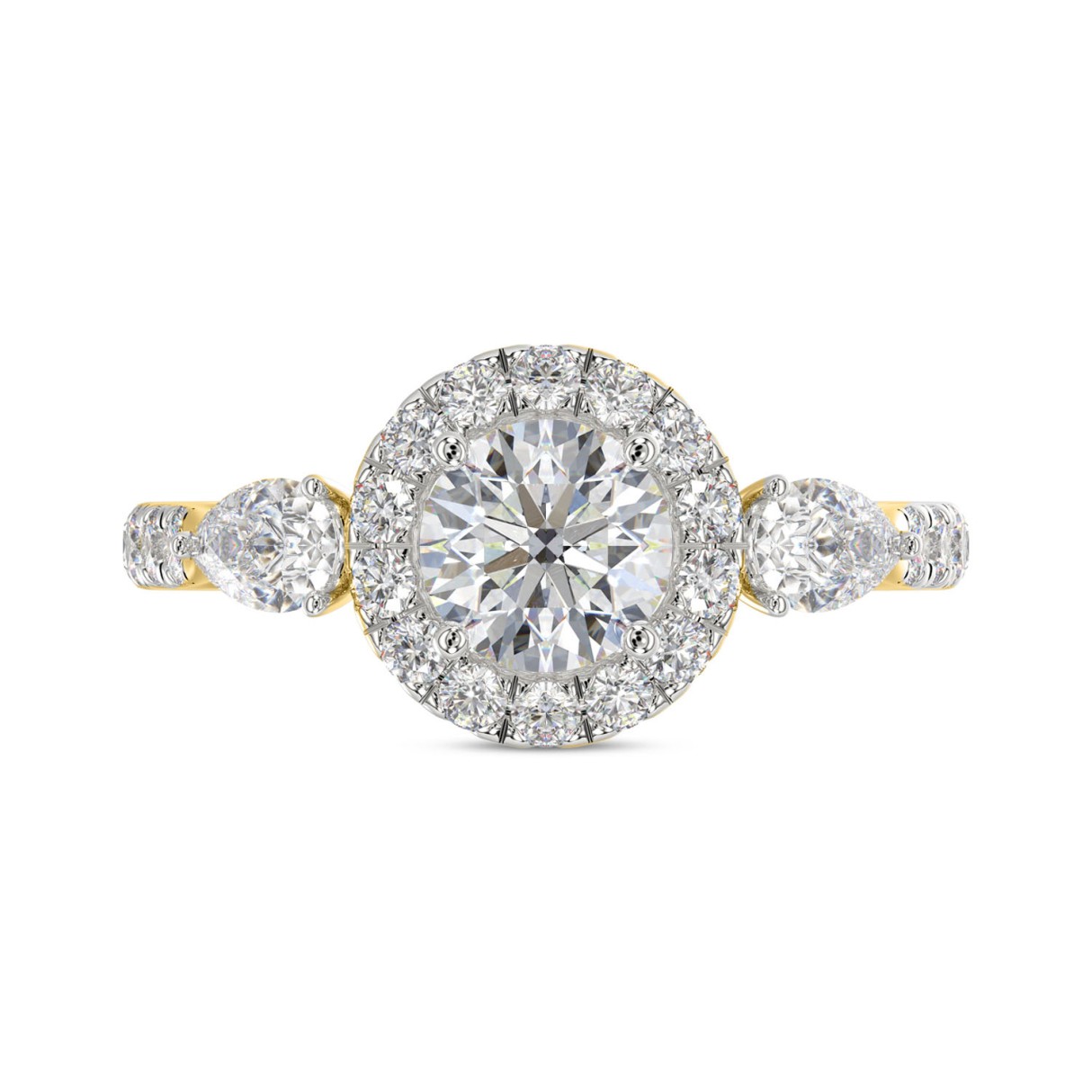 LADIES RING 2CT ROUND/PEAR DIAMOND 14K YELLOW GOLD (CENTER STONE ROUND DIAMOND 1CT )