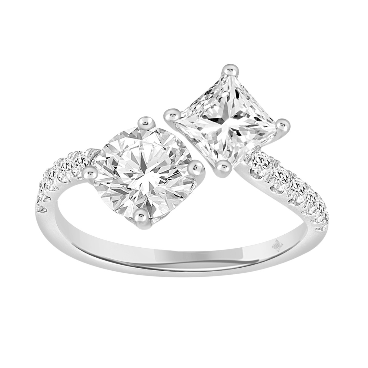 LADIES RING 2CT ROUND/PRINCESS DIAMOND 14K WHITE GOLD