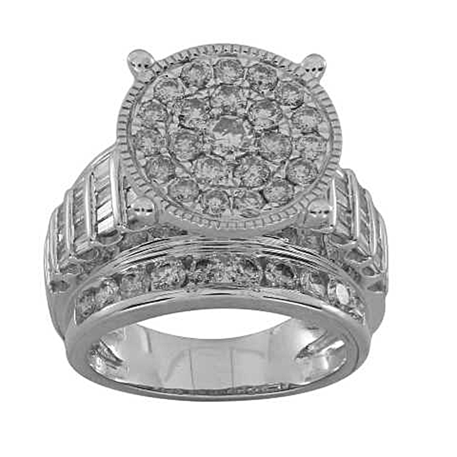 LADIES RING 3.00CT ROUND/BAGUETTE DIAMOND 10K WHITE GOLD