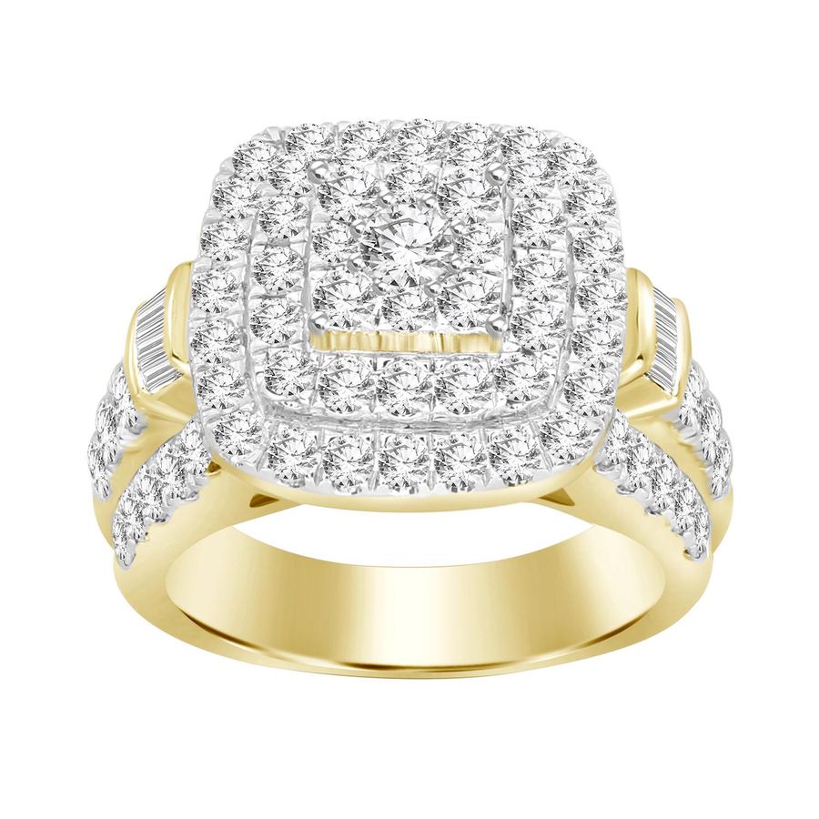 LADIES RING 3.00CT ROUND/BAGUETTE DIAMOND 10K YELLOW GOLD