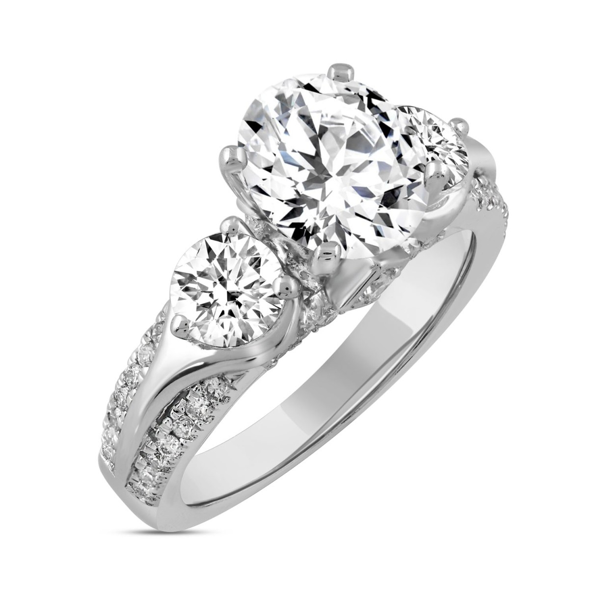 LADIES RING 3 1/3CT ROUND DIAMOND 14K WHITE GOLD (CENTER STONE ROUND DIAMOND 2CT )