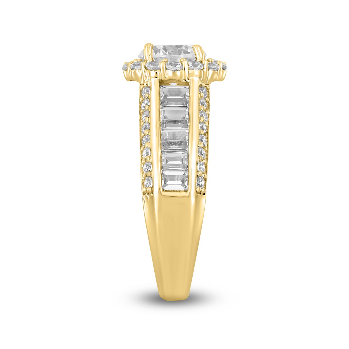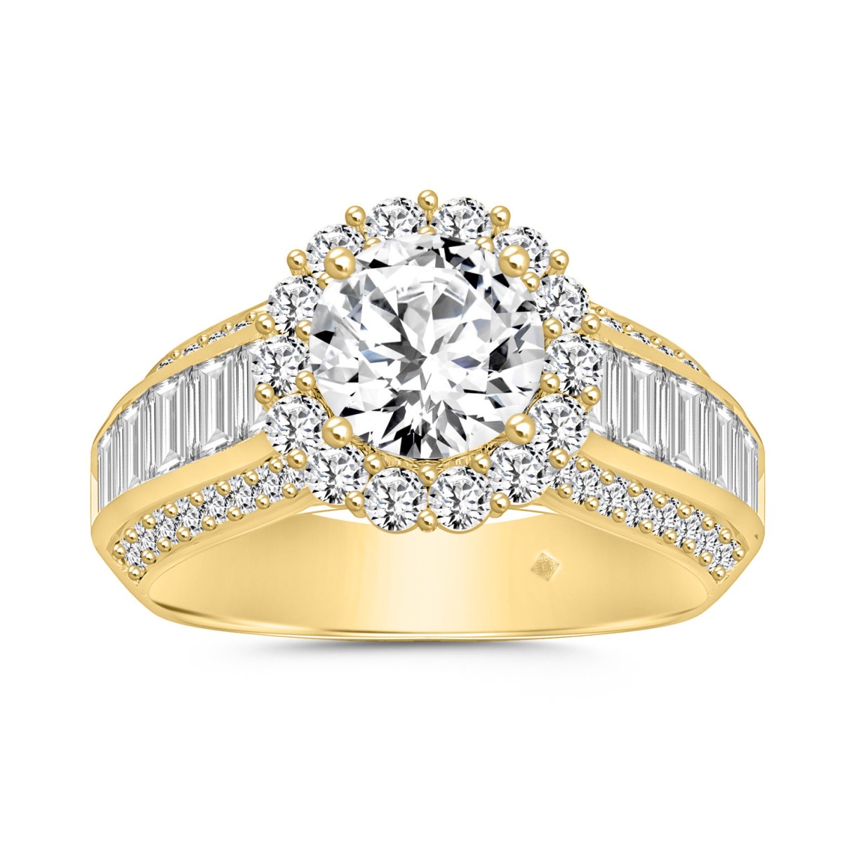 LADIES RING 3 3/4CT ROUND/BAGUETTE DIAMOND 14K YELLOW GOLD (CENTER STONE ROUND DIAMOND 1 1/2CT )