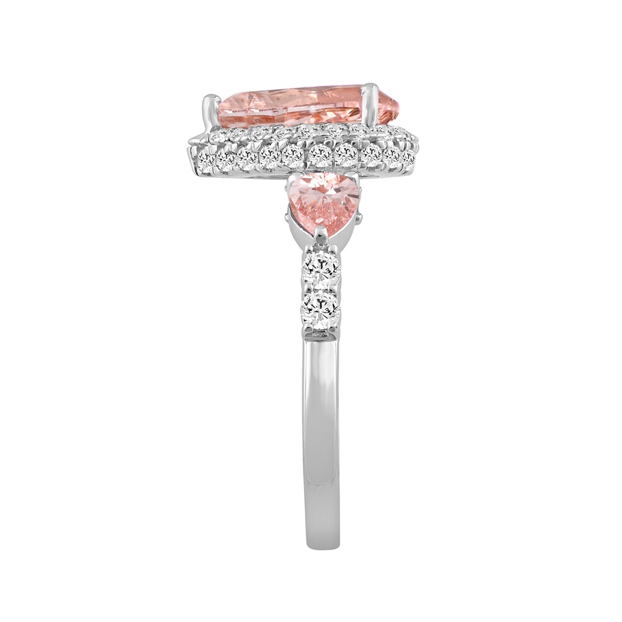 LADIES RING 3 3/4CT ROUND/PEAR DIAMOND 14K WHITE GOLD (CENTER STONE PEAR DIAMOND 2CT )