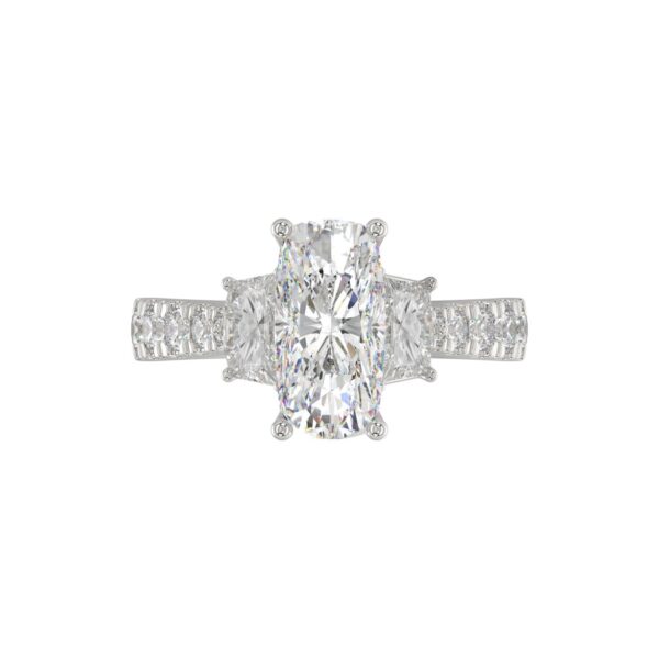 LADIES RING 3.33CT ROUND/CUSHION/BAGUETTE DIAMOND WHITE PLATINUM (CENTER STONE CUSHION DIAMOND 2CT)
