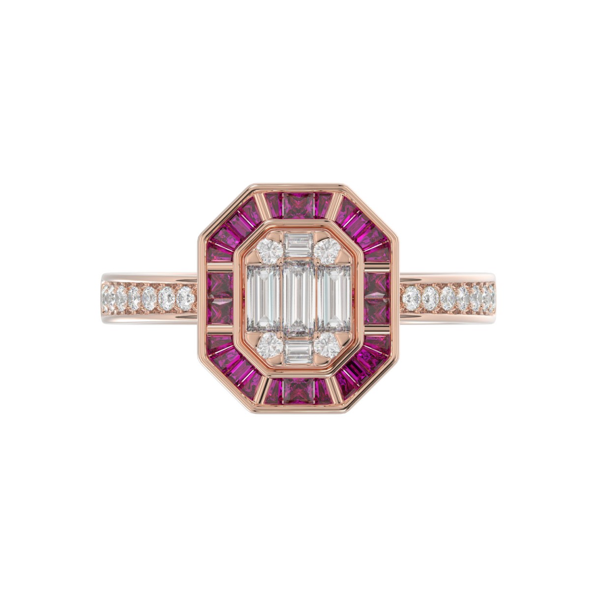 Home Rings LADIES RING 3/4CT ROUND/BAGUETTE/PRINCESS TRAPEZOID RUBY DIAMOND 14K ROSE GOLD