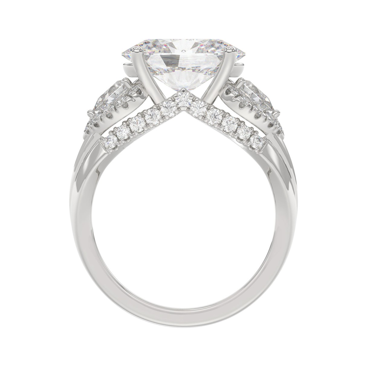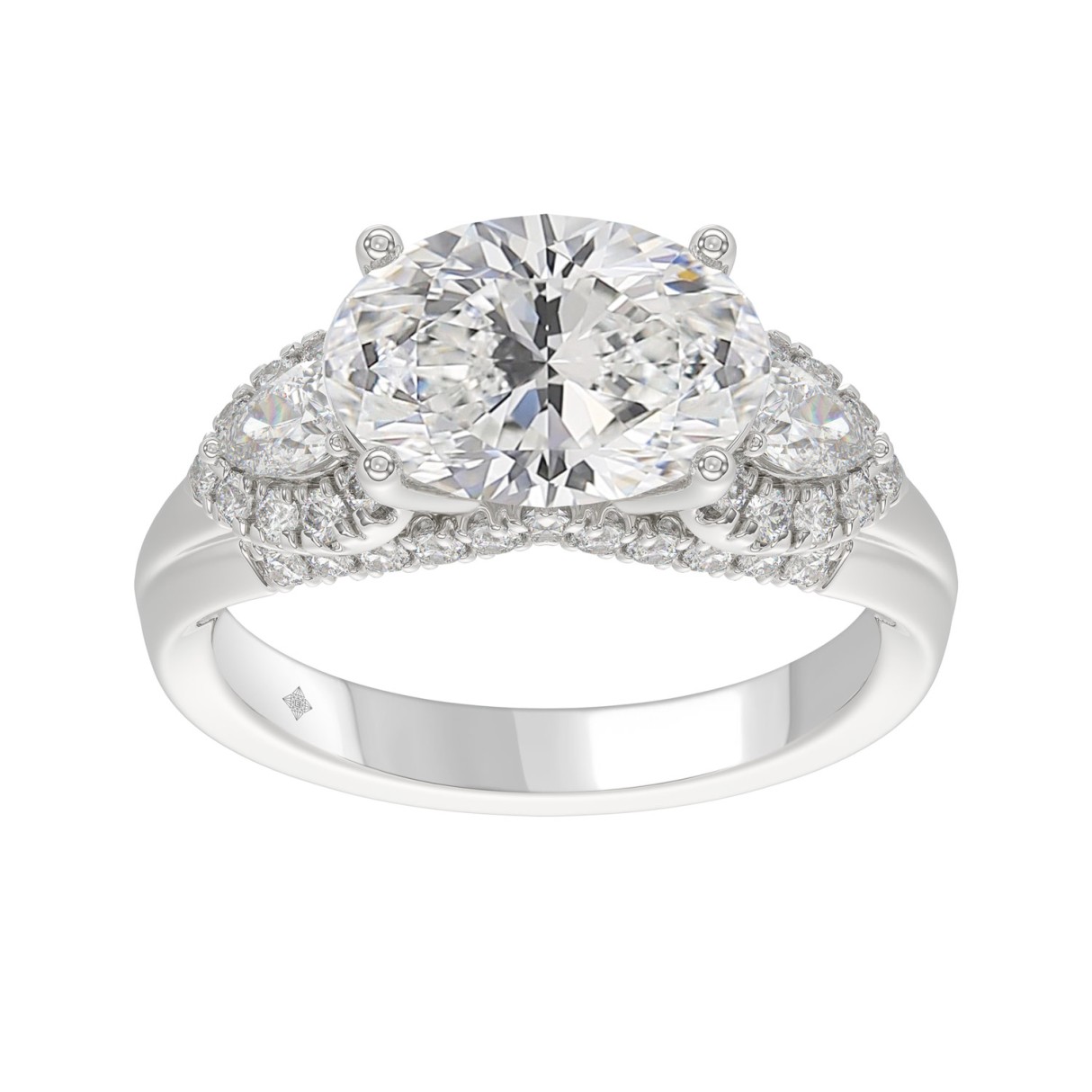 LADIES RING 3.75CT ROUND/PEAR/OVAL DIAMOND 14K WHITE GOLD (CENTER STONE OVAL DIAMOND 3.00CT)